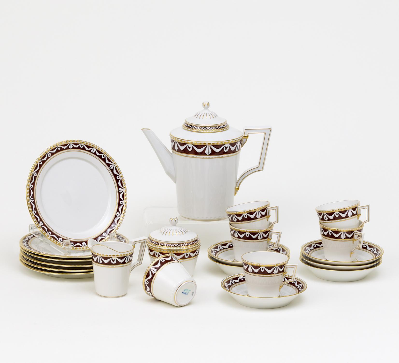 Kaffeeservice Kurlanddekor für sechs Personen.