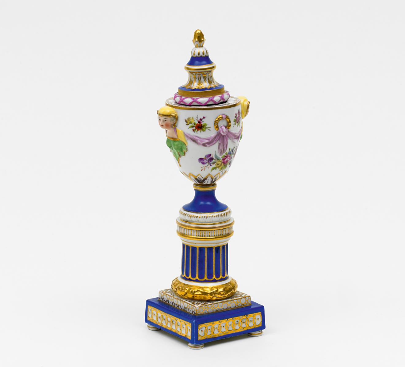 Porzellan, farbig und gold staffiert. H.27cm. Zustand B/C.