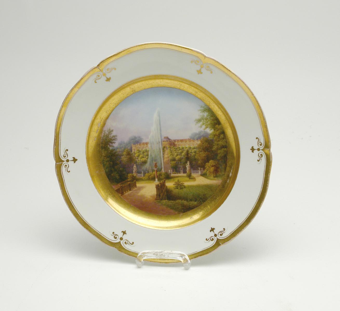 Porzellan, farbig und gold staffiert. + 23cm. Zustand A/B. Rückseitig bez. 'Schloß Sanssouci'.