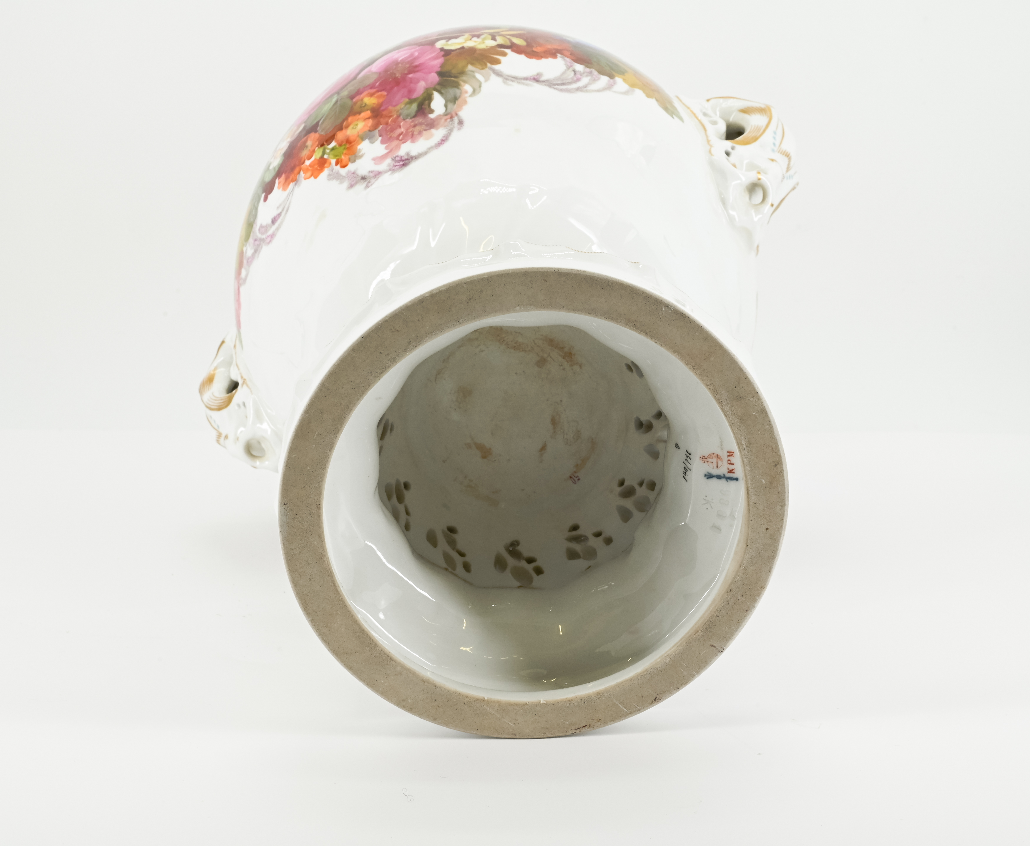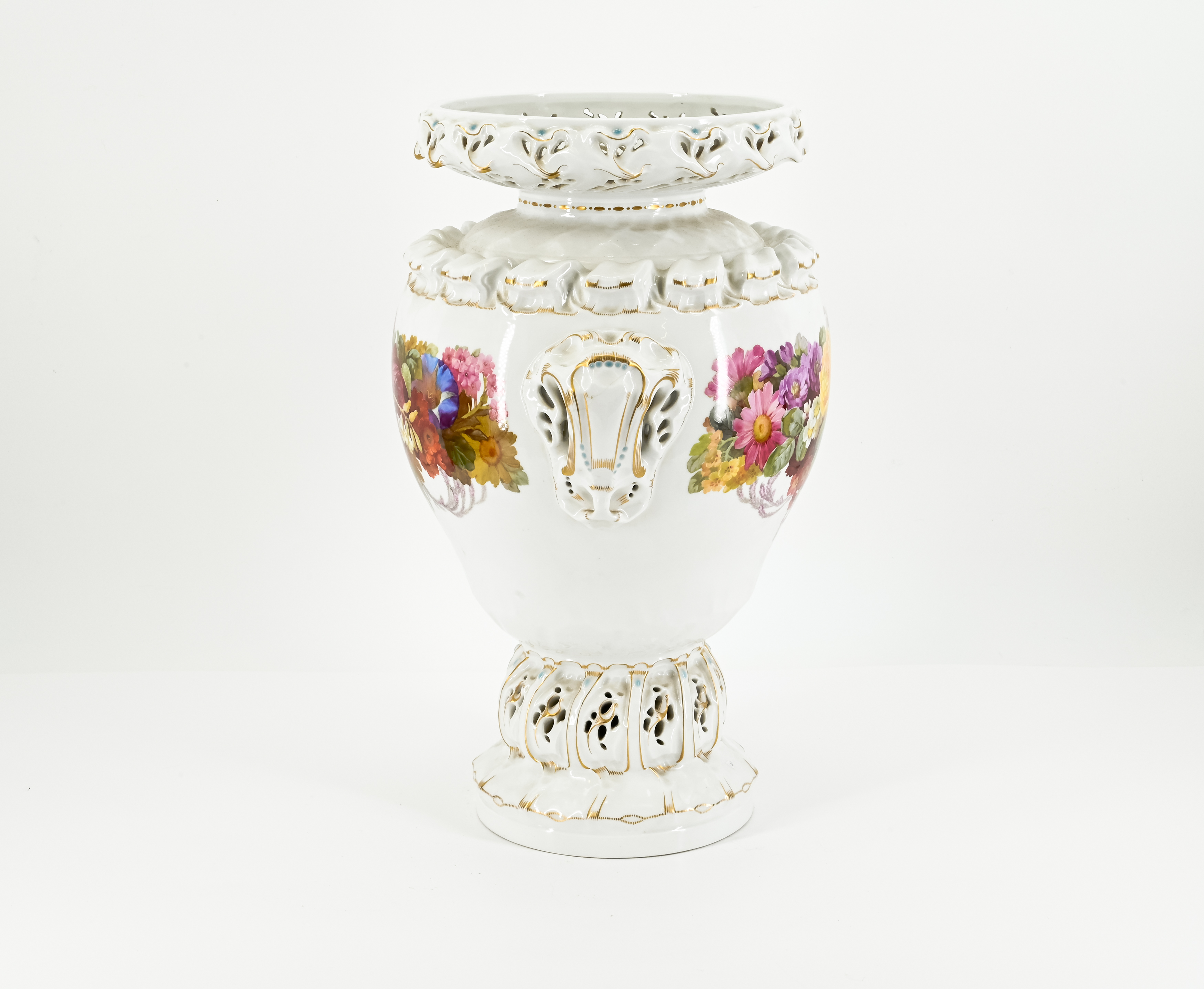 GROSSE AUFSATZVASE MIT BLUMENDEKOR.