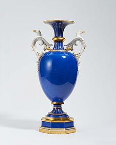 abschließt. Seitliche teilvergoldete Adlerkopfhenkel aus Biskuitporzellan.