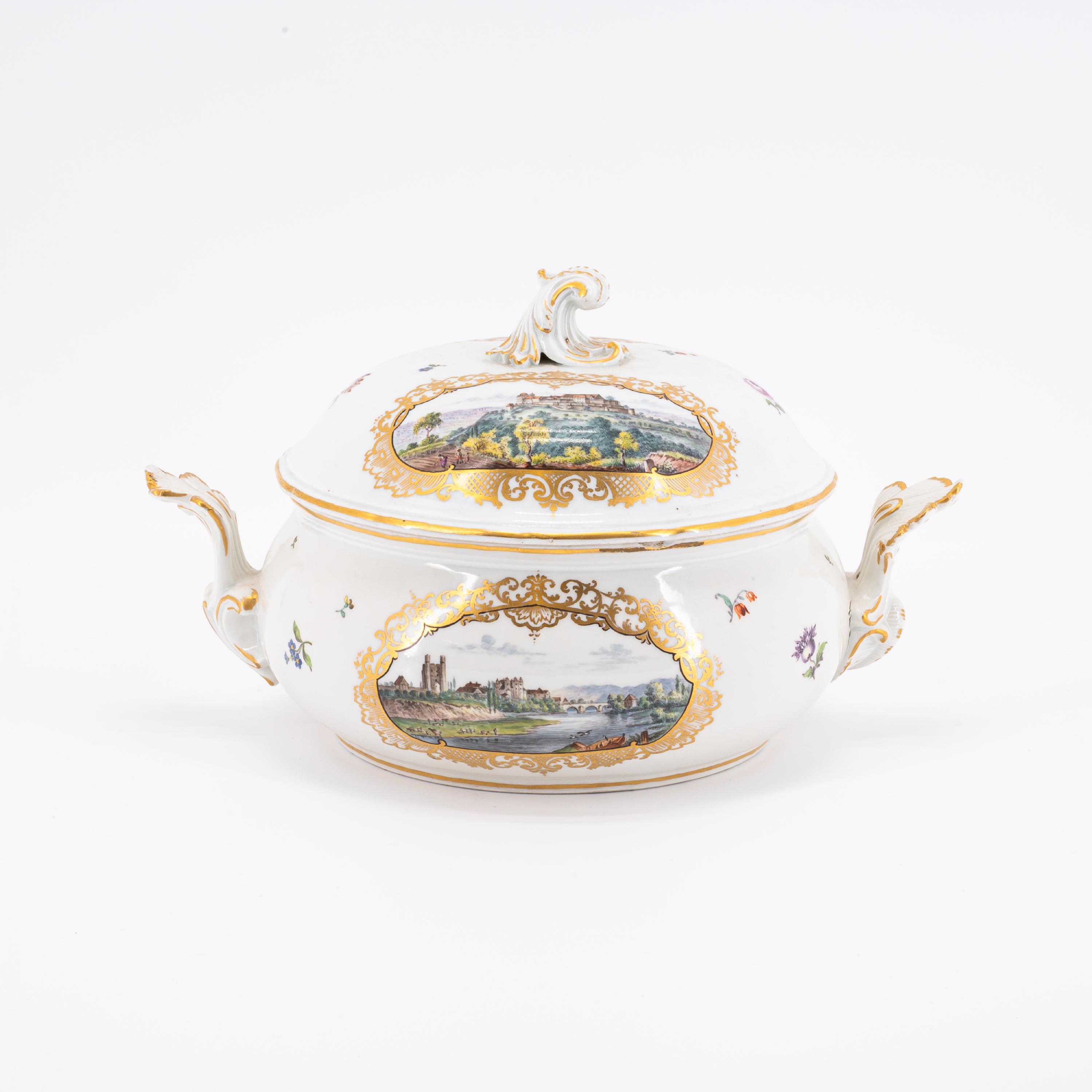 GRUPPE MIT EINER TERRINE UND SECHS UNTERSCHIEDLICHEN KANNEN.