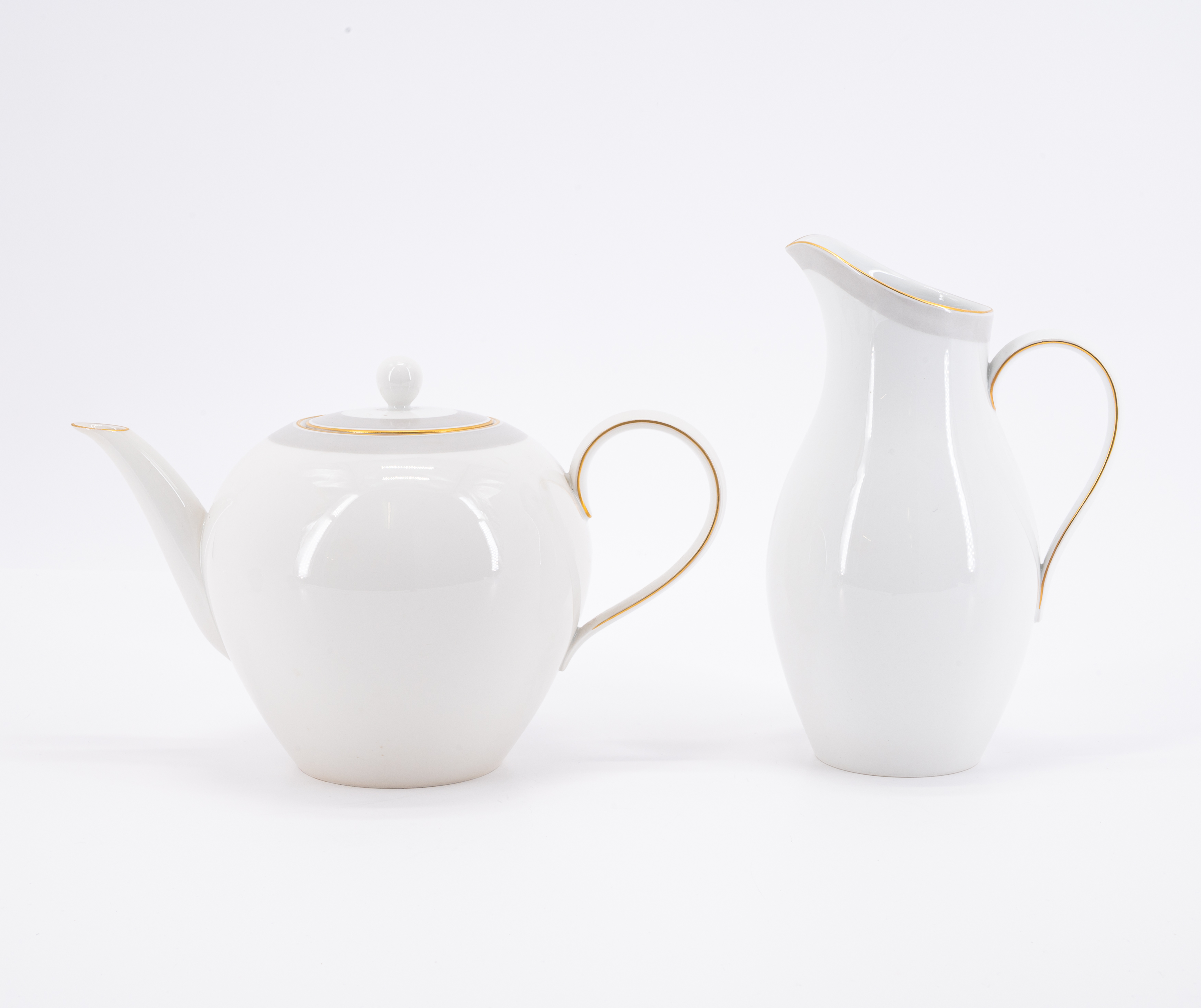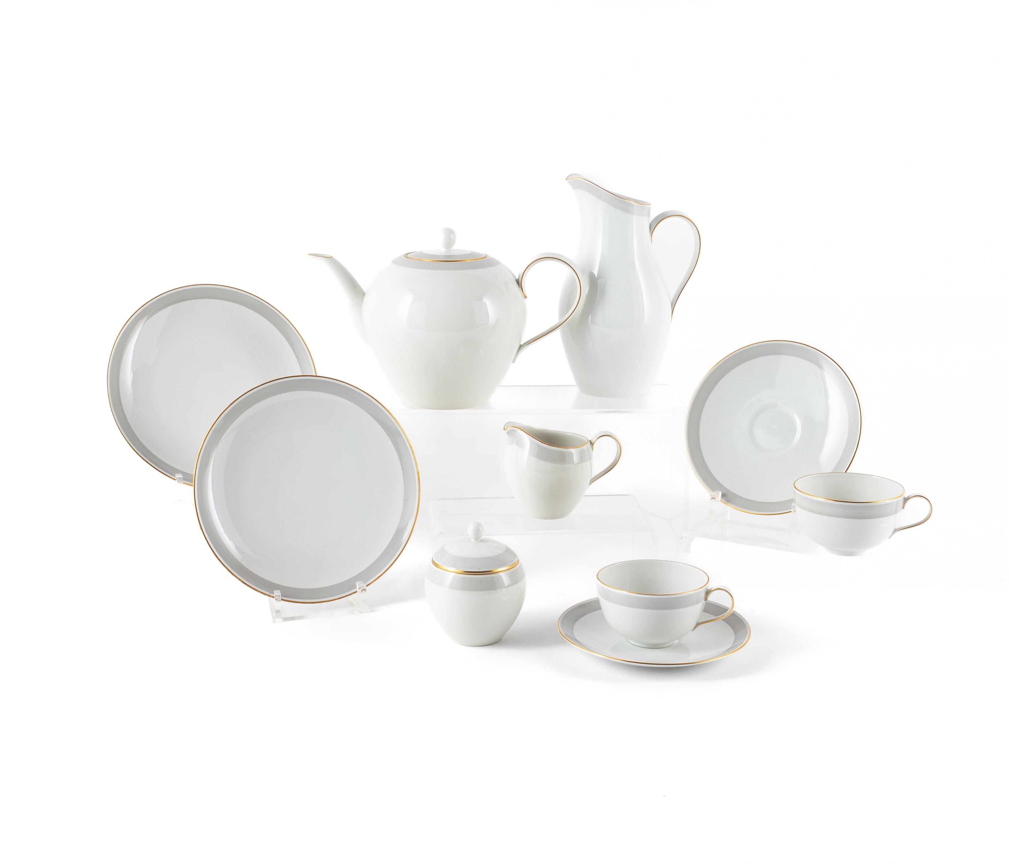 KAFFEESERVICE "URBINO" MIT GRAUEM BAND UND GOLDRAND.