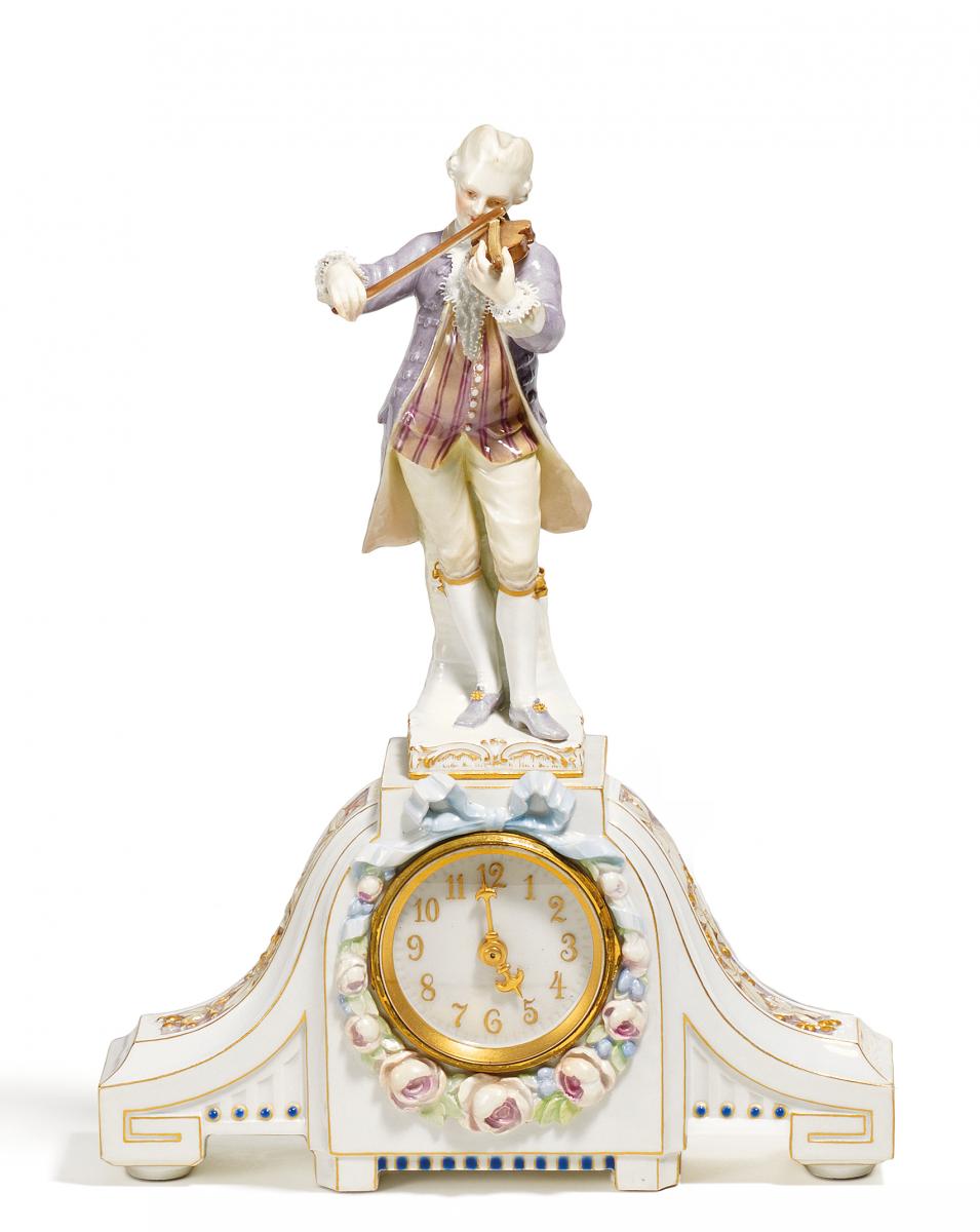 Maße: Breite der Uhr 19,5cm, Höhe mit Figur 26,5cm.