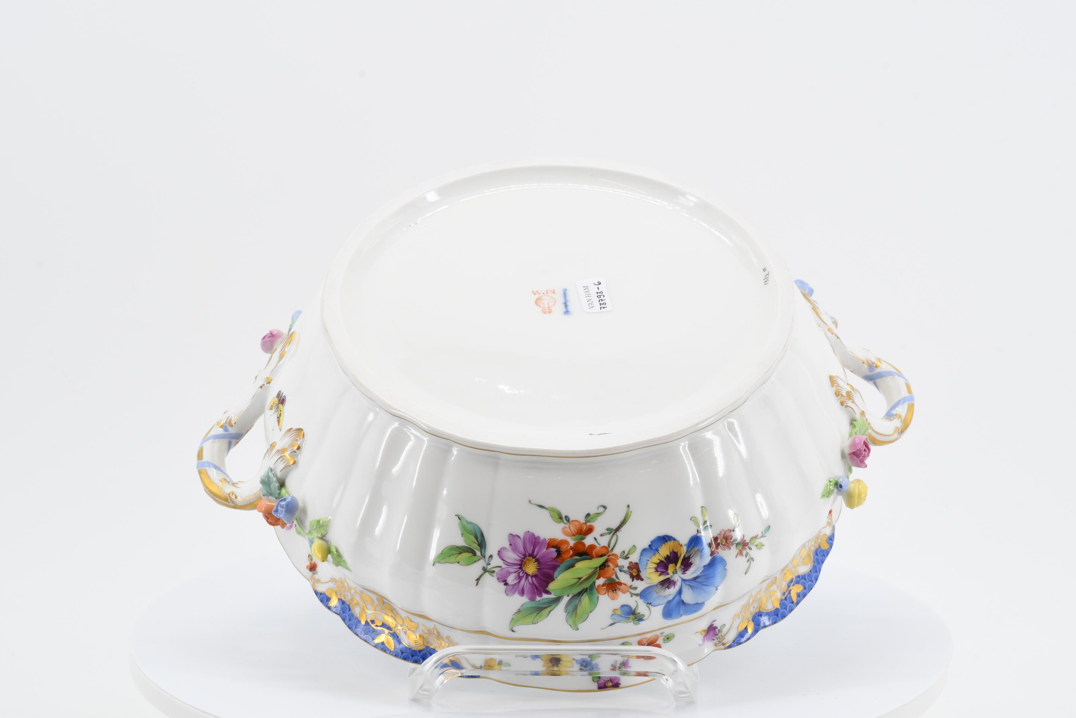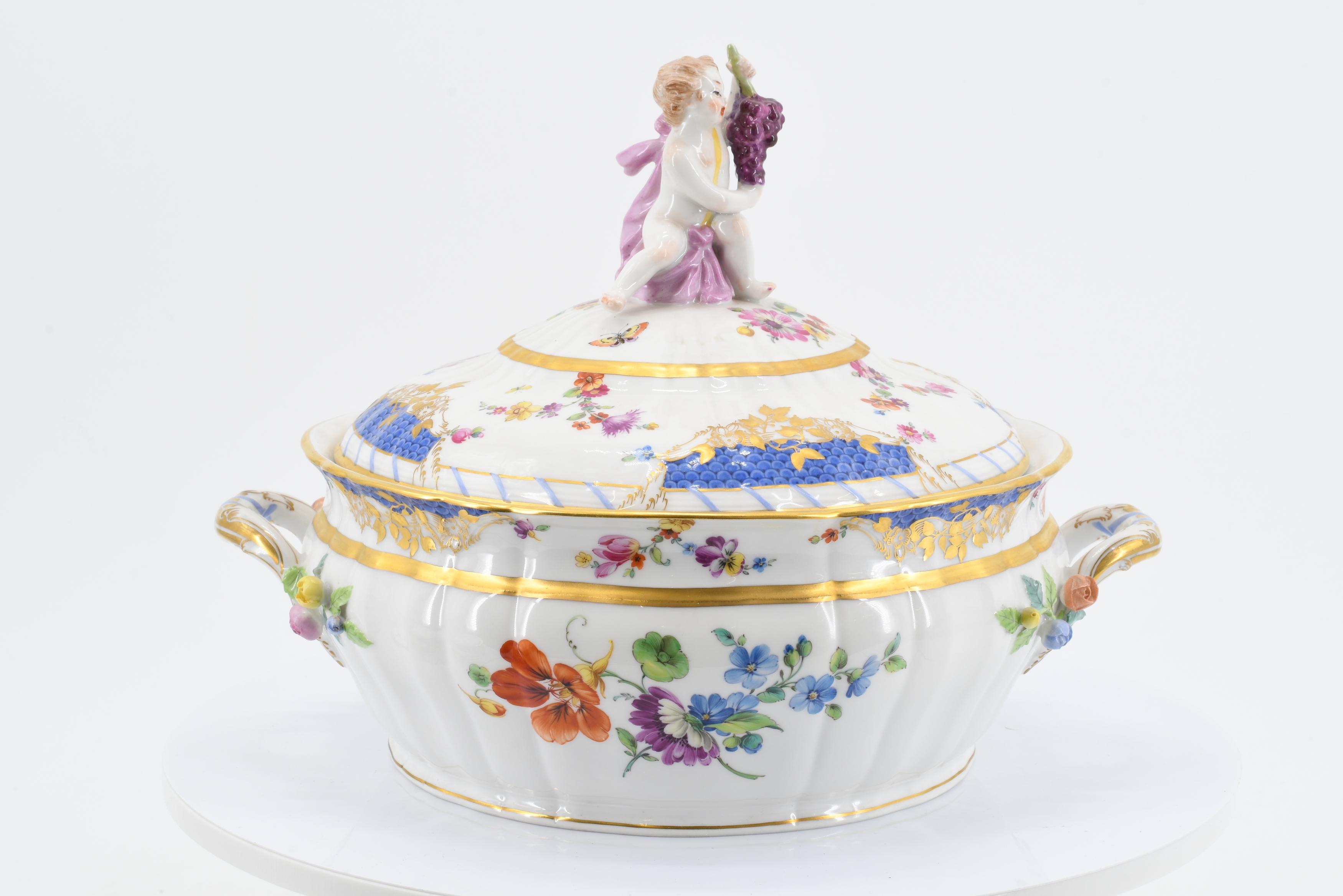Seit den 1770er Jahren konzentrierte sich die Manufaktur auf die floralen Dekore, die der König besonders liebte und die sich bald zu einer besonderen Spezialität der KPM etablierten. Die Üppigkeit des Berliner Porzellangartens ist dabei ohnegleichen. Große, lose Arrangements schmücken die Wände und Spiegel der Geschirrteile. Die Zusammenstellung der Blüten unterliegt keiner jahreszeitlichen Ordnung, sondern ist allein der Dynamik und optischen Harmonie der Arrangements verpflichtet. Die botanischen Eigenschaften der Blüten, Knospen und Blätter sind akribisch auf dem Porzellan festgehalten, die dadurch geradezu lebendig scheinen. Dem Speisenden, der sich an eine mit diesem Service geschmückte Tafel setzt, bietet sich neben Gaumenfreuden ein Augenschmaus, der seinesgleichen sucht.
