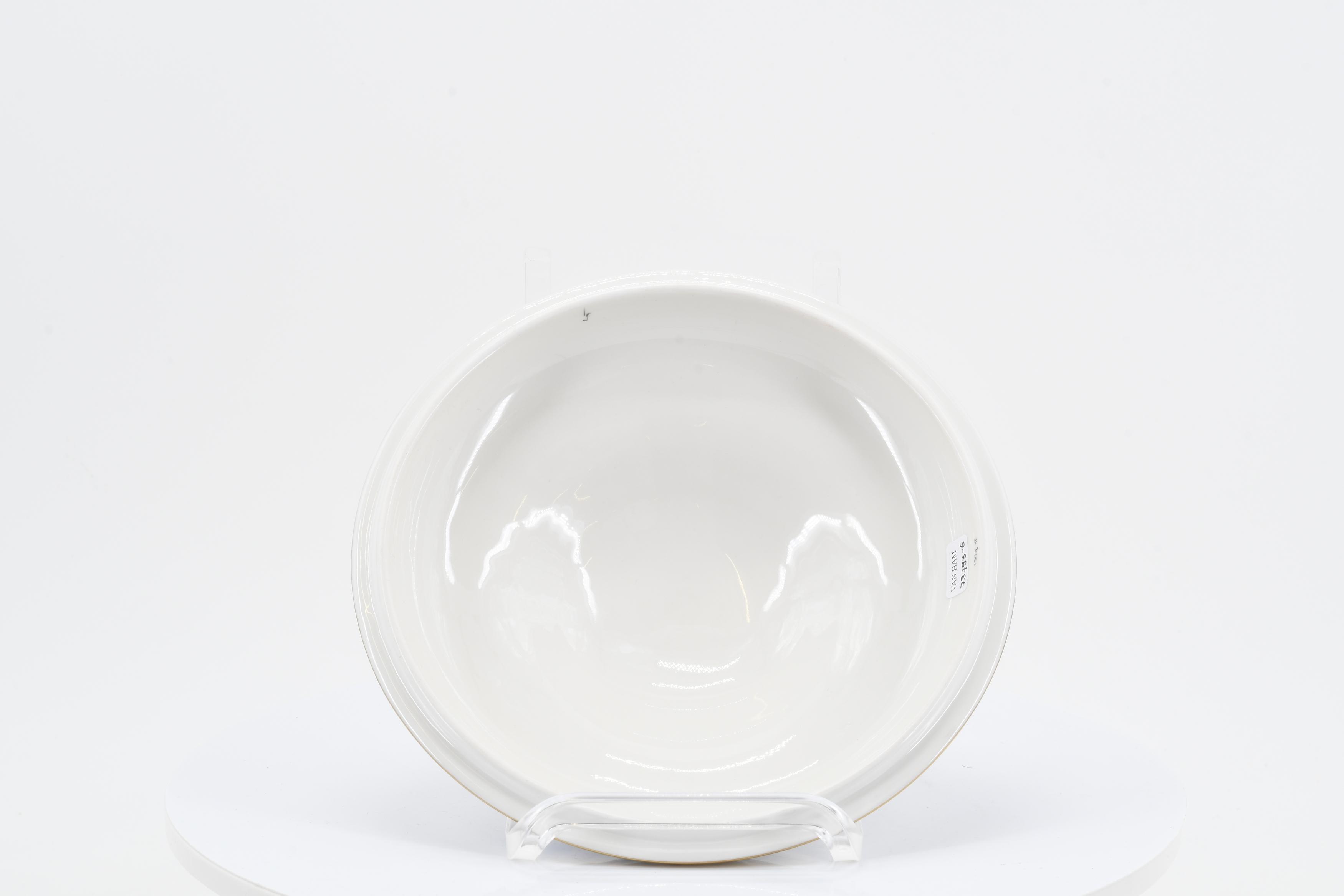Das Service für das Breslauer Stadtschloss wurde ab 1767 angefertigt und war mit mehr als 7000 Reichstalern der teuerste Auftrag, den der König der KPM jemals erteilte. Hier kam die neuentwickelte Gefäßform »Antique Zierathe« zur Anwendung, die erstmals klassizistische Züge aufweist. Die Kanten der Gefäße sind façoniert, der Rand von einem Stabbündel eingefasst. Daran angelegt sind vier schmale Reserven, die mit einem Schuppendekor in leuchtendem Blau gefüllt sind. Dazu schmücken goldene Ranken, Blüten und abgerissene Blumengirlanden die Fahnen der Platten, Schüsseln und Teller. Im Zentrum der Gestaltung steht jedoch die Berliner Blumenmalerei, die in diesem Service ihren Höhepunkt findet.