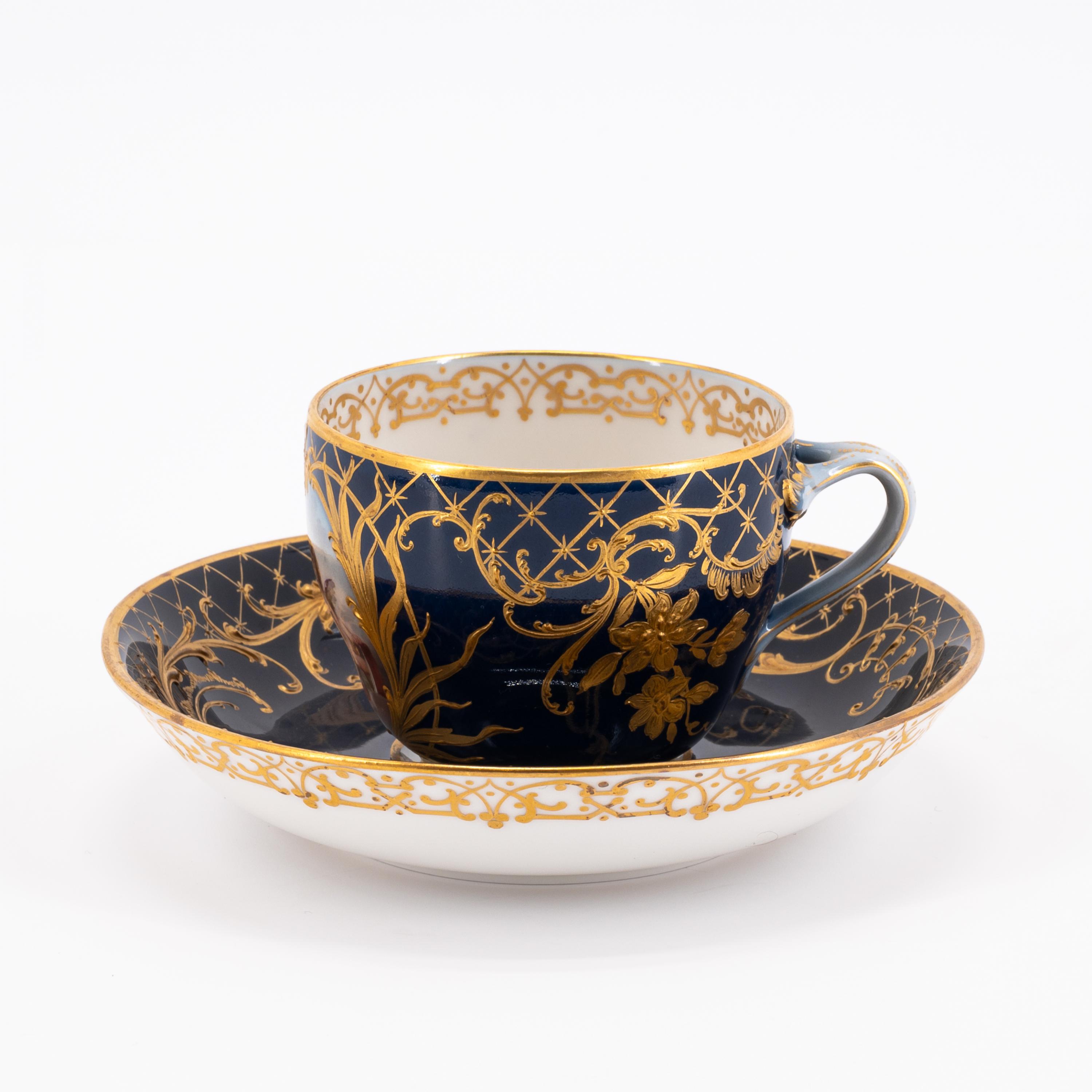 TASSE UND UNTERTASSE MIT KOBALTBLAUEM FOND UND AMORETTEN.