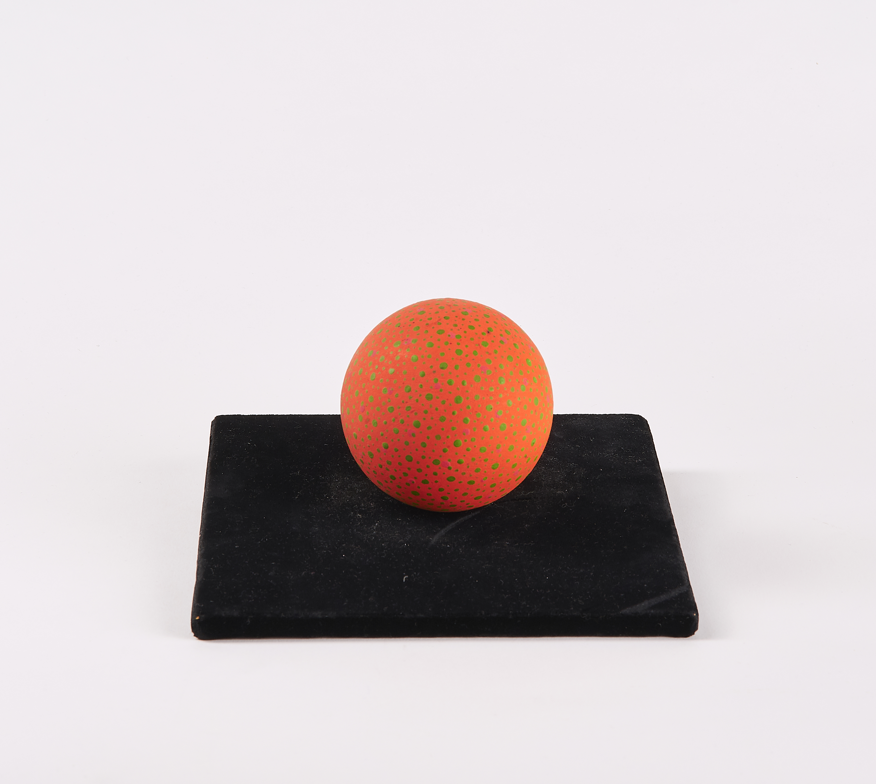 Technik: Bemalte Holzkugel und Samt auf Holz aufgezogen.