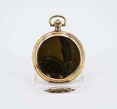 Gehäuse/Armband: 585/- Gelbgold, Zffbl. golden, Indizes schwarz lackiert, Zeiger gebläut.