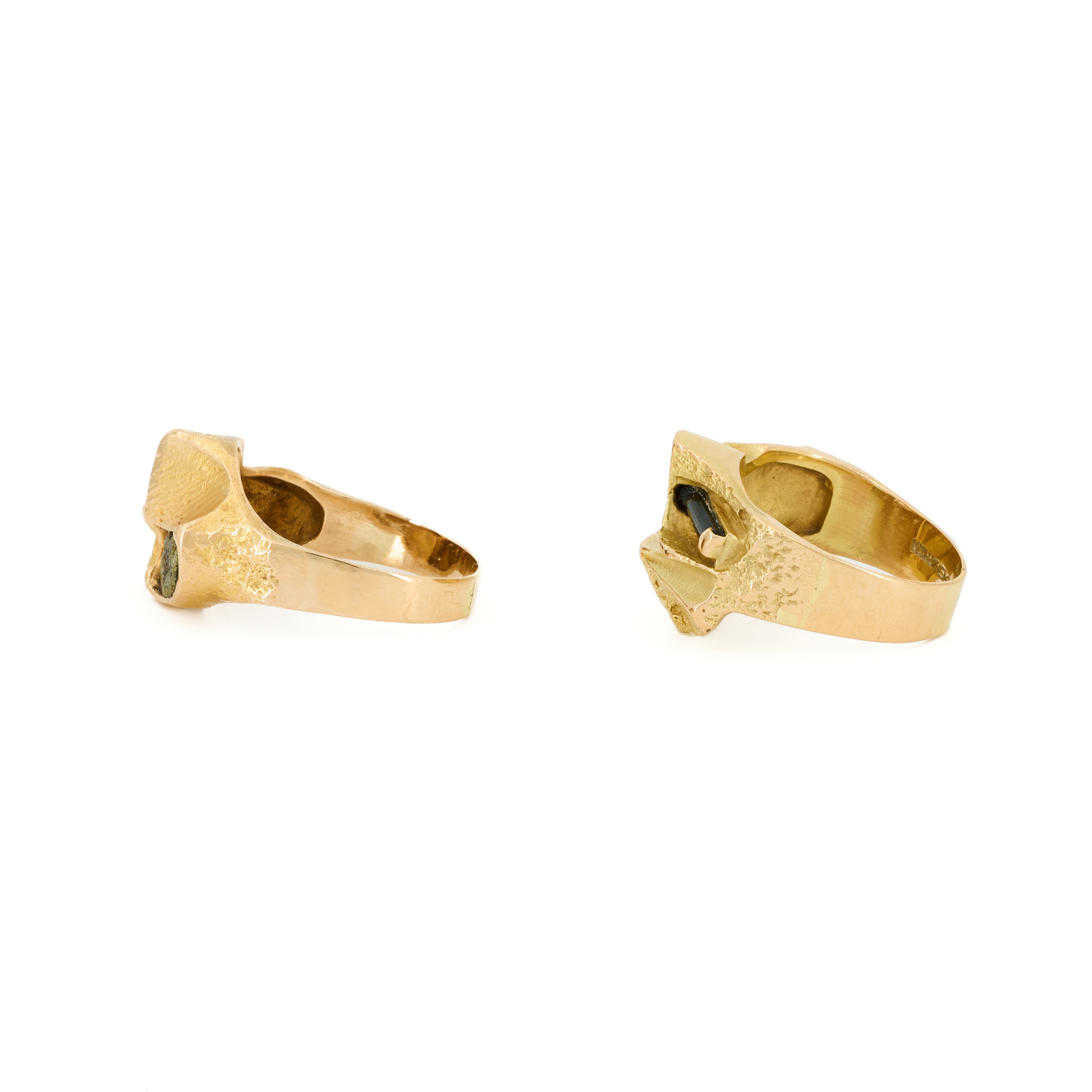 Polyphemos und "Tourmaline Bridge". Set aus Pyrit-Ring und Turmalin-Ring.