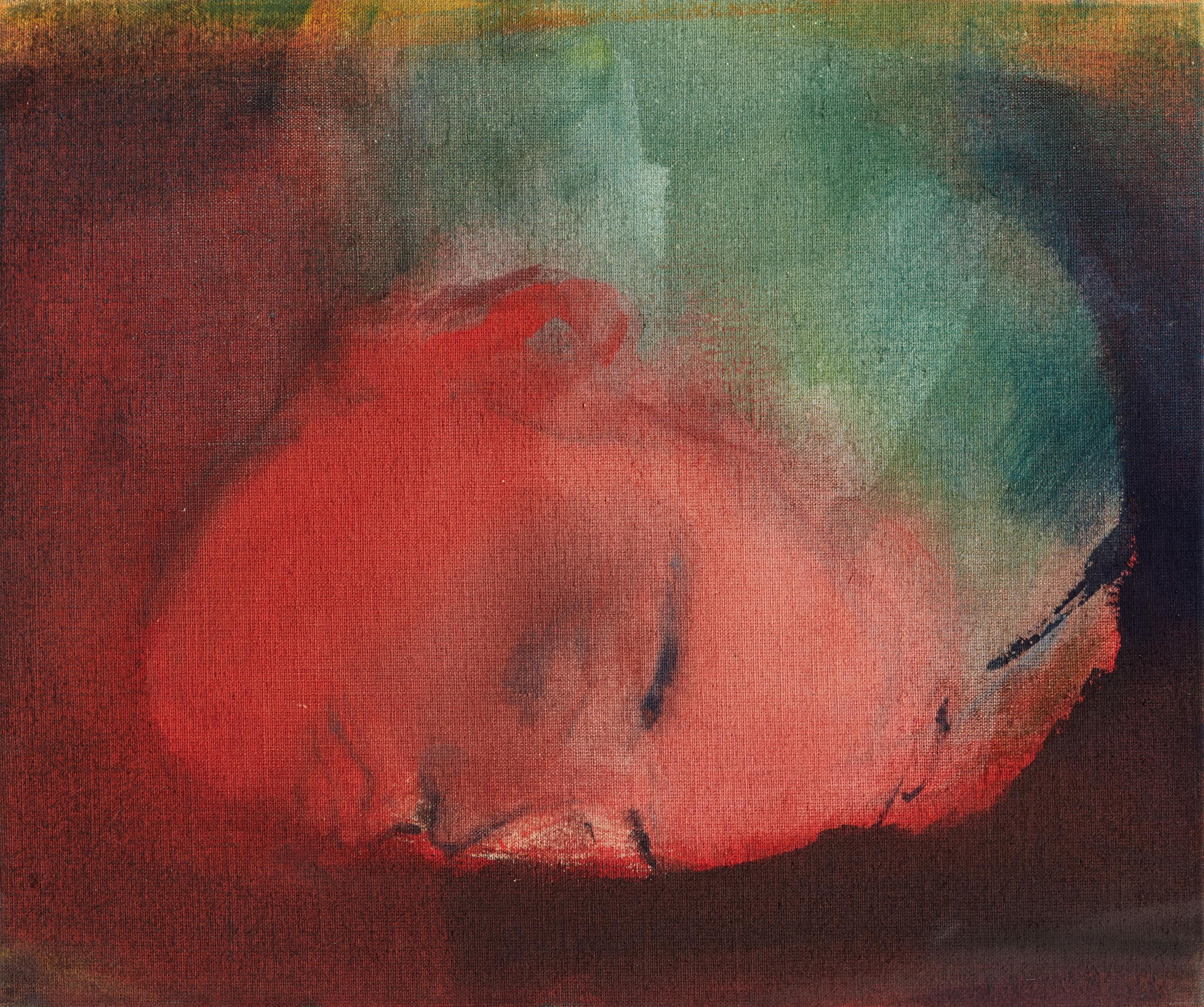 Das Gemälde "Face (M-07-33)" aus dem Jahr 2007 zeigt eine schemenhafte Physiognomie, die in leuchtendem Rot aus dem Bildgrund hervortritt. Die Gesichtszüge erscheinen im Profil: Augen, Nase und Mund sind nur angedeutet, während sich die Konturen in ein atmosphärisches Umfeld von Grün- und Dunkeltönen auflösen. Das Antlitz wirkt zugleich präsent und entrückt - wie eine Erscheinung, die im Moment des Verschwindens sichtbar wird. Diese fragile Schwebe von Form und Auflösung ist zentral für Ikemuras künstlerische Praxis. Köpfe und Gesichter treten in ihrem Werk nicht als individuelle Porträts auf, sondern als Sinnbilder innerer Empfindungen, als Projektionsflächen für Traum und Erinnerung. Die malerische Reduktion und suggestive Farbigkeit des Gemäldes vereinen Ikemuras westliche Ausbildung mit fernöstlicher Sensibilität für Leere und Andeutung. So entsteht eine poetische Verdichtung ihres Schaffens, in der das Sichtbare in ein zeitloses Bild innerer Wirklichkeit transformiert wird.