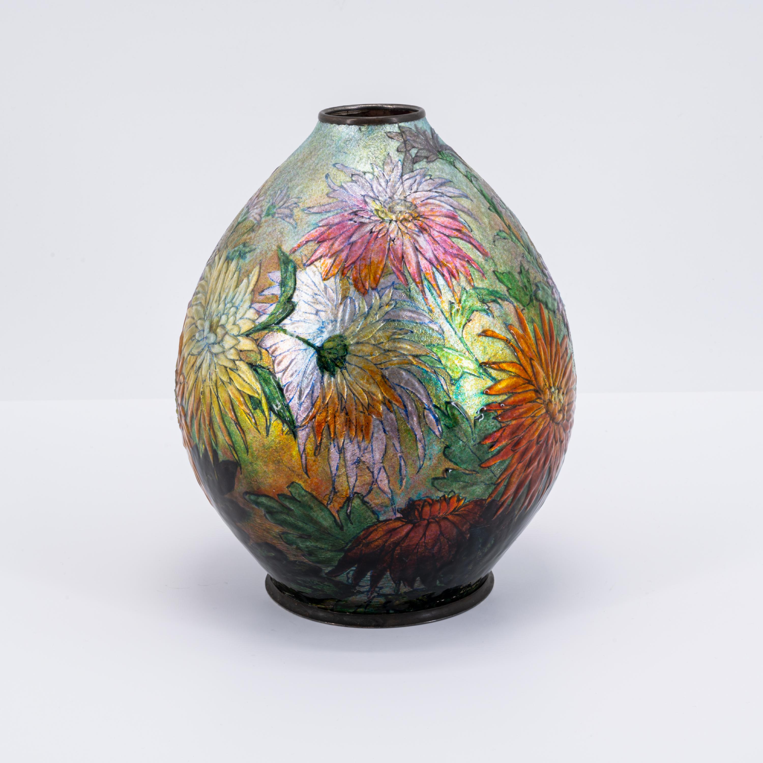 GEBAUCHTE VASE MIT CHRYSANTHEMEN.