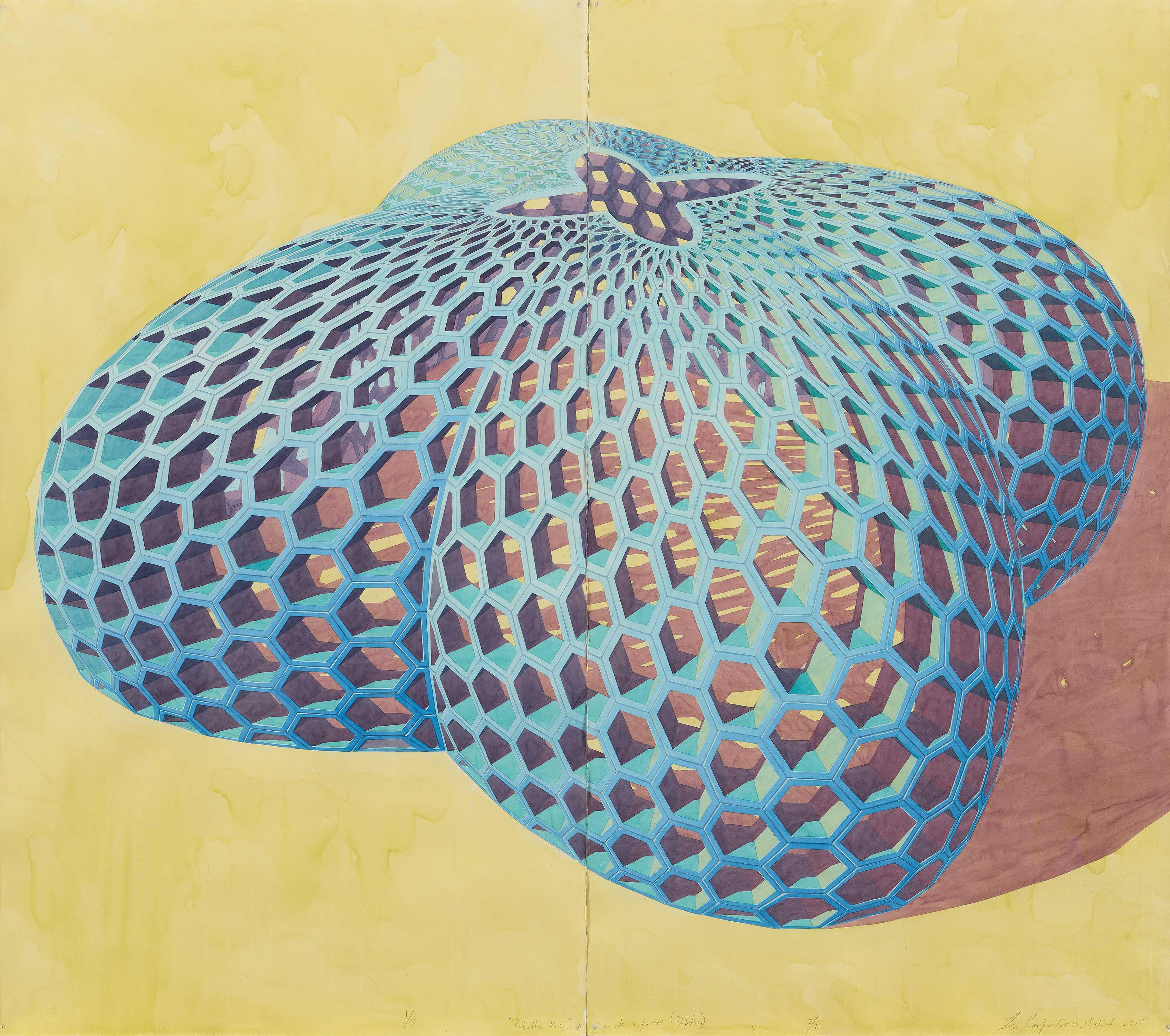 Bezeichnung: Betitelt, signiert und datiert am unteren Rand: "Pabellón Polen" vista superior (Diptych) Los Carpinteros, Madrid 2015.