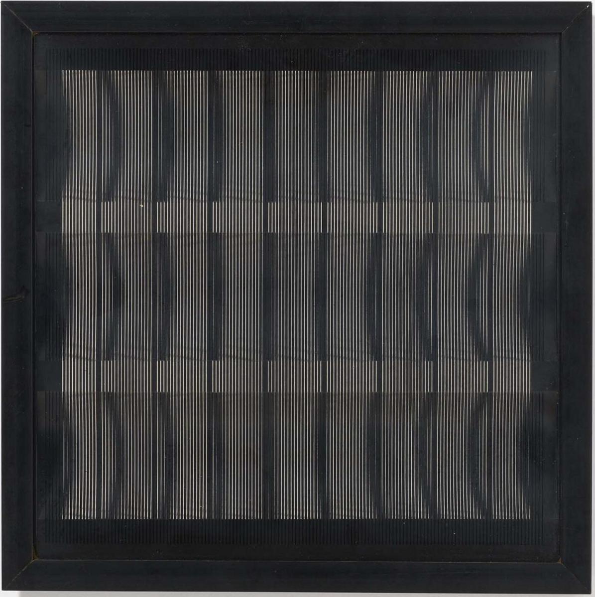 Karton und Plexiglas in schwarzem HolzkastenMaße: 28,5 x 28,5 x 2cm.