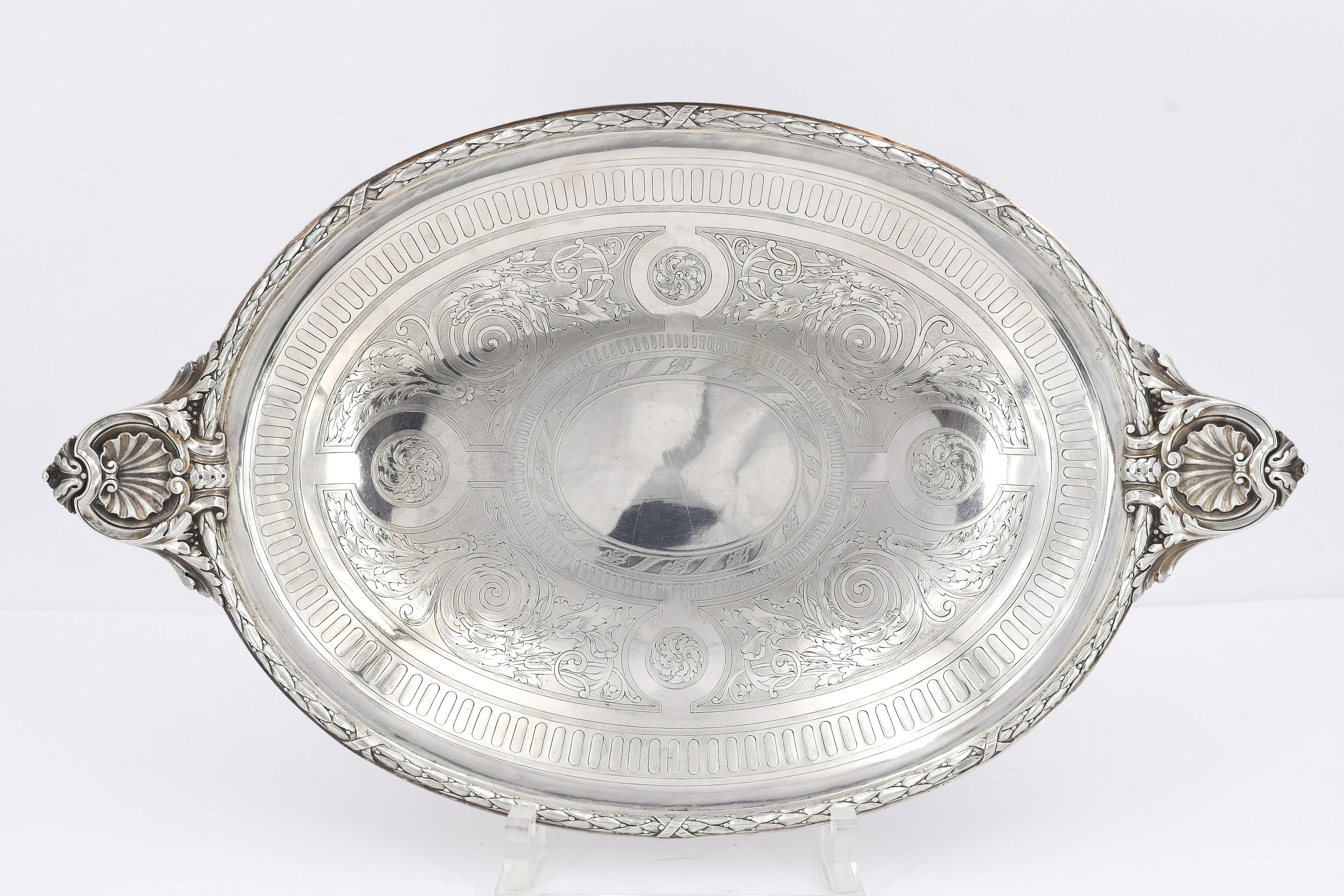 OVALE ANBIETSCHALE MIT LORBEER UND MUSCHELORNAMENT.