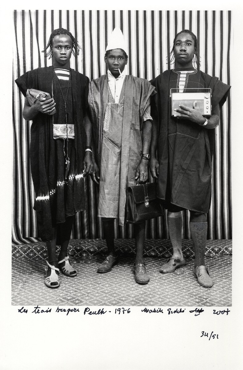 "Les trois bergers Peuls". 1976. Gelatinesilberabzug von 2007. Unterhalb des Bildes mit schwarzer Tinte signiert, betitelt, datiert und nummeriert. Passepartout. (Exemplar 34/51cm). 17,9.