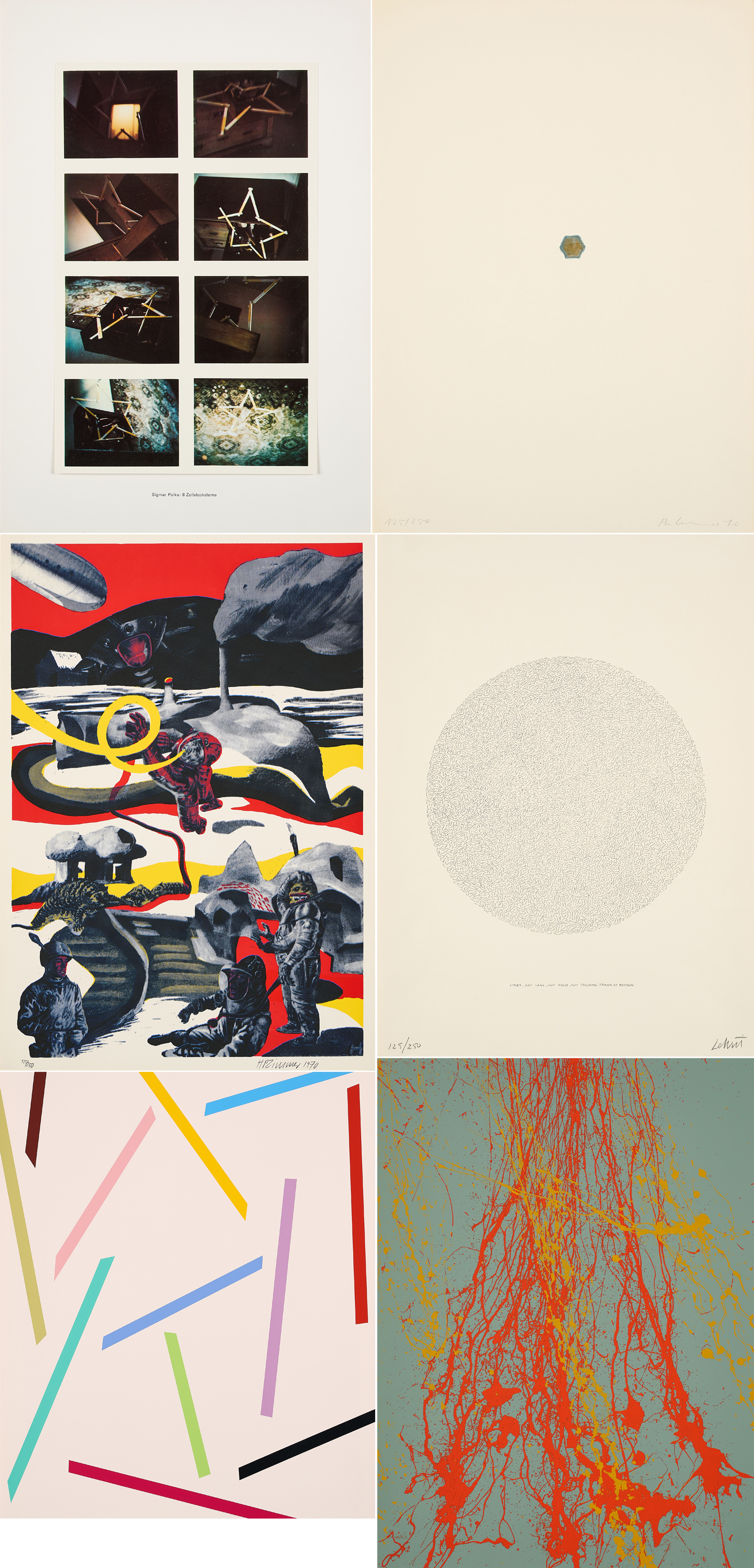 Polke. Unterschiedliche Drucktechniken auf verschiedenen Papieren und Formaten. Jeweils