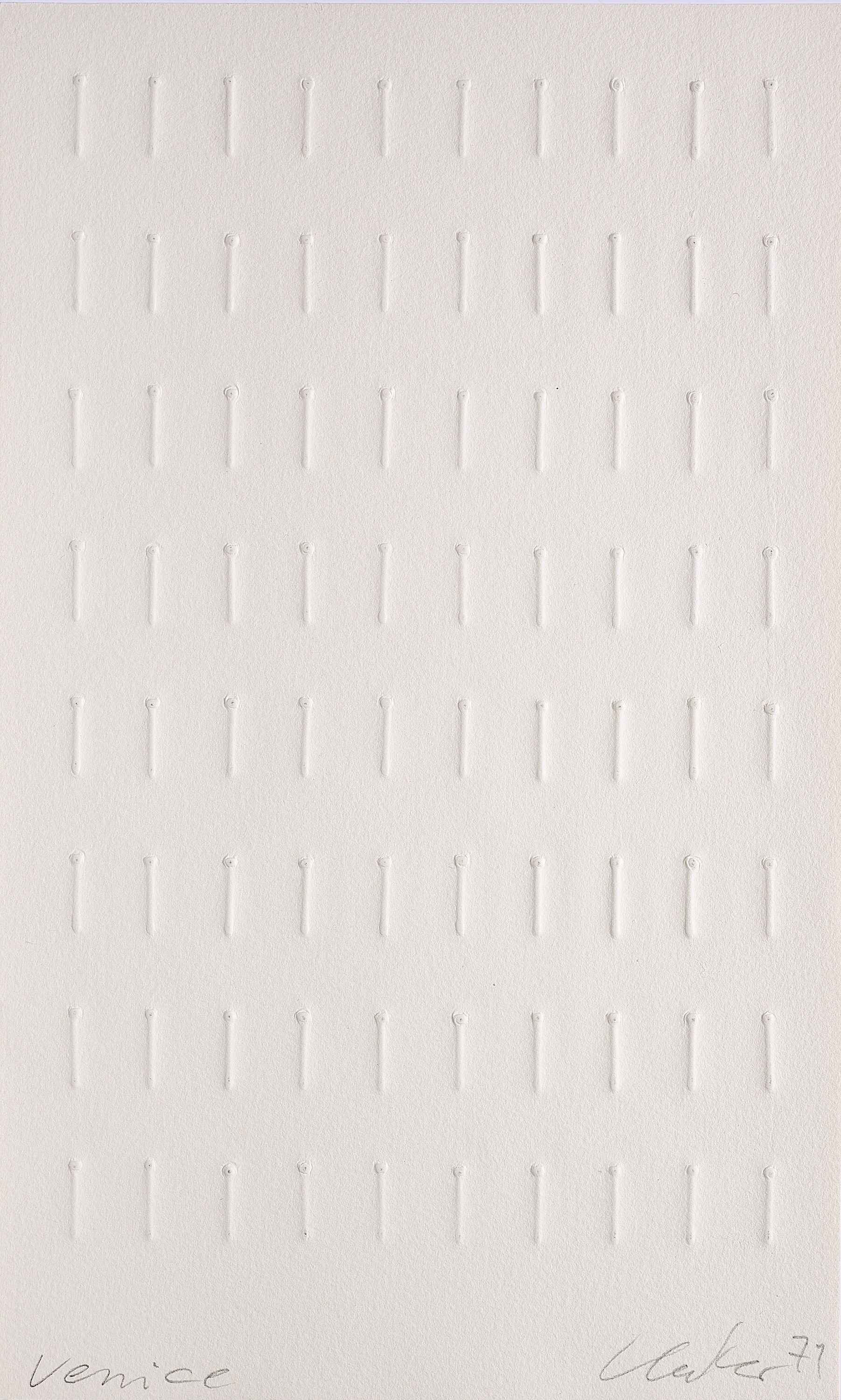 (36,5 x 22cm). d) Günther Uecker. Prägedruck auf Bütten. 30 x 18cm (36,5 x 22cm).