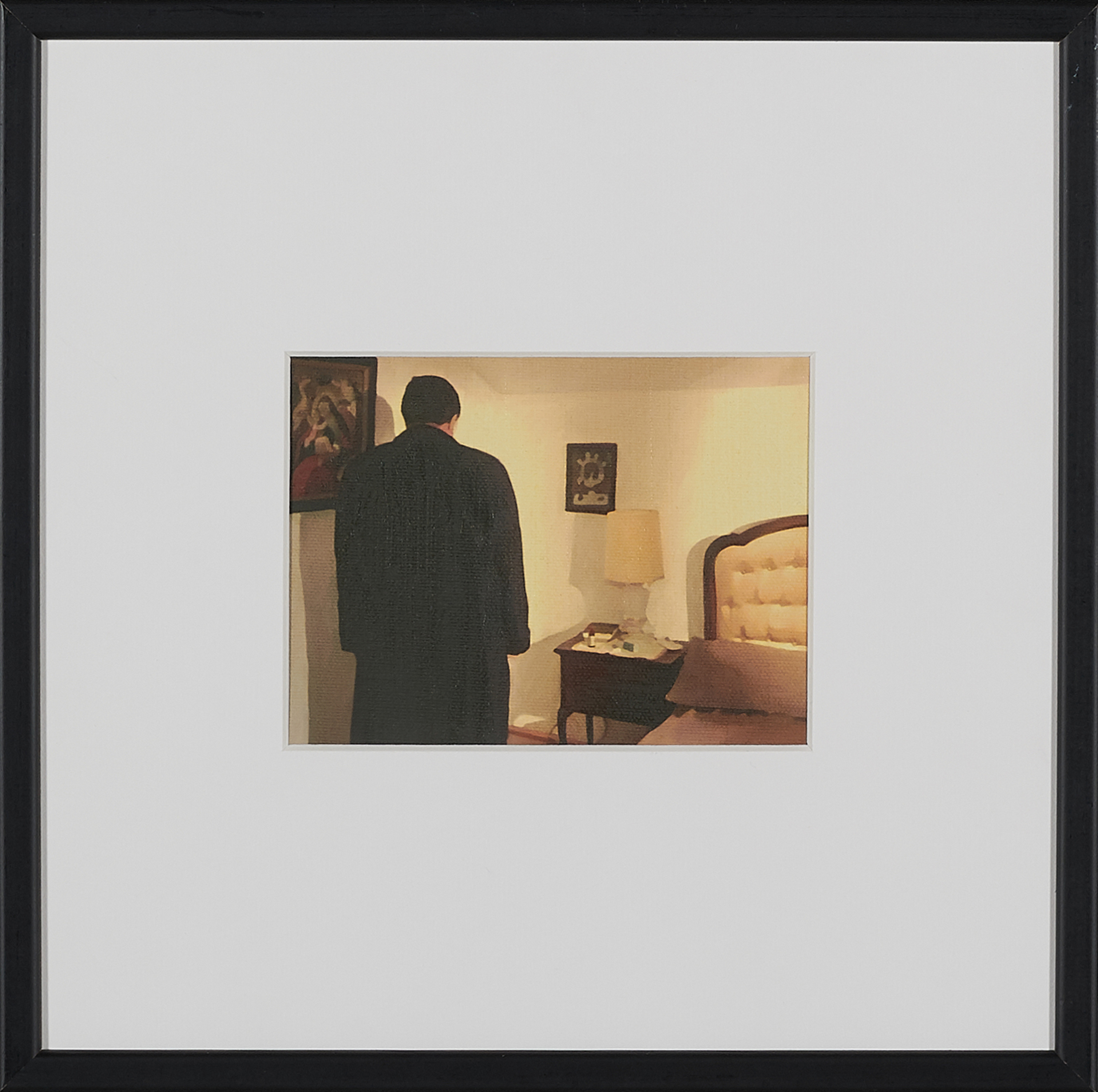 Ohne Titel. 2009. Öl auf Leinwand. In Passepartout geklebt. 12,5 x 16cm. Rahmen.