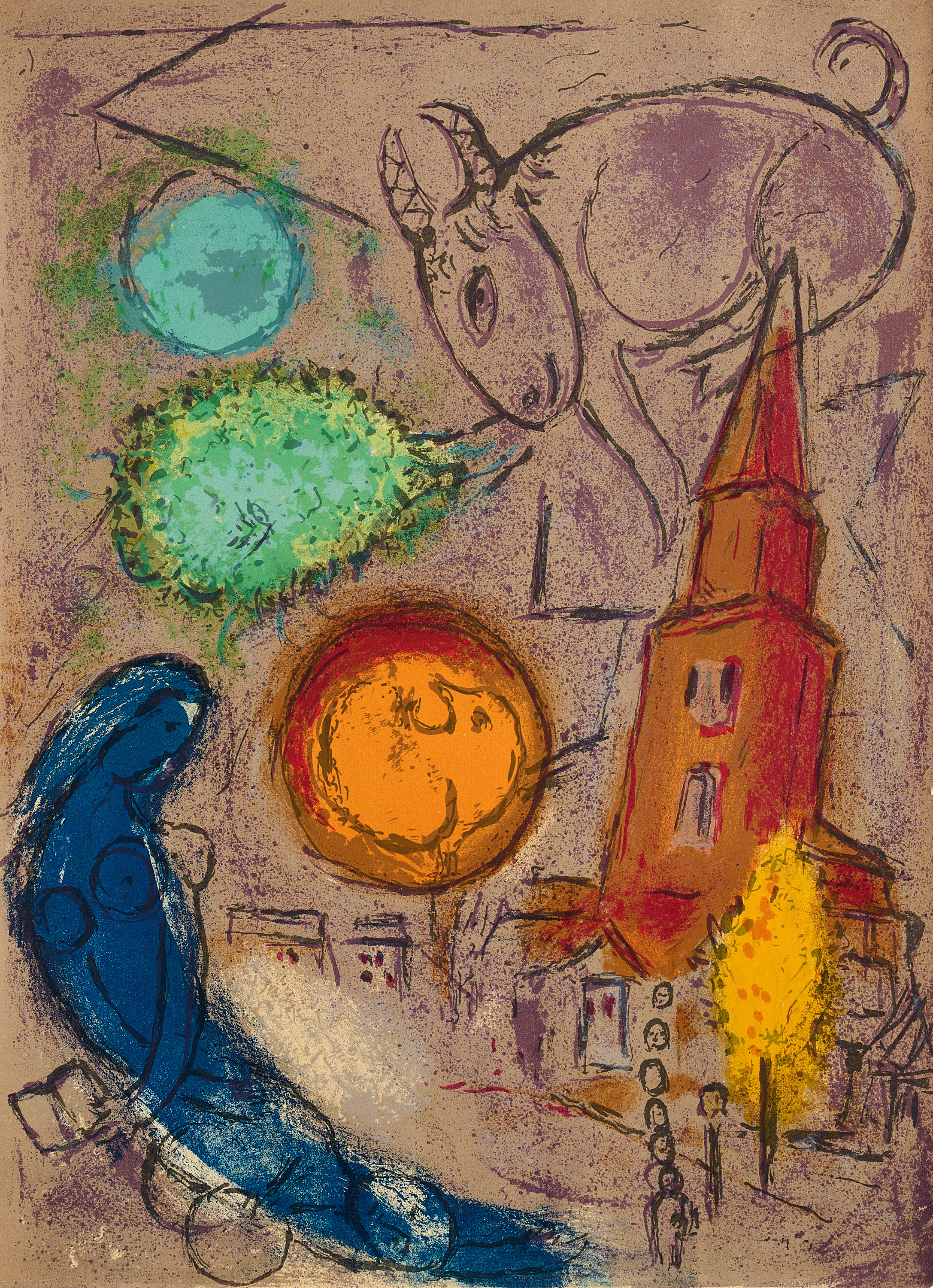 - Cain, Julien: Chagall - Lithograph I, Monte Carlo 1960, a) WVZ.-Nr. 97, b) WVZ.-Nr. 83, c) WVZ.-Nr. 101, d) WVZ.-Nr. 102, e) WVZ.-Nr. 100