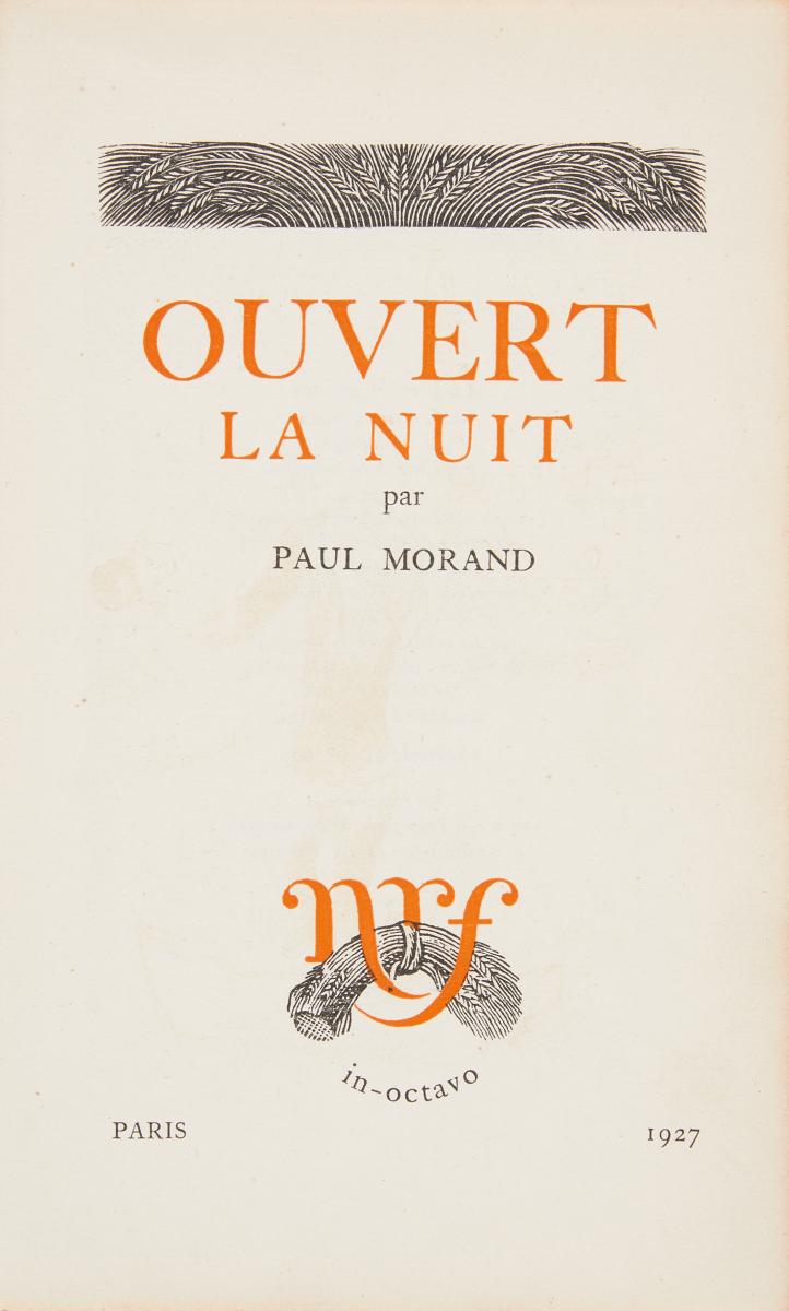 Publikation. Beigabe: Deckblatt zu "Ouvert la Nuit". 1927. Texteindruck auf Hollande