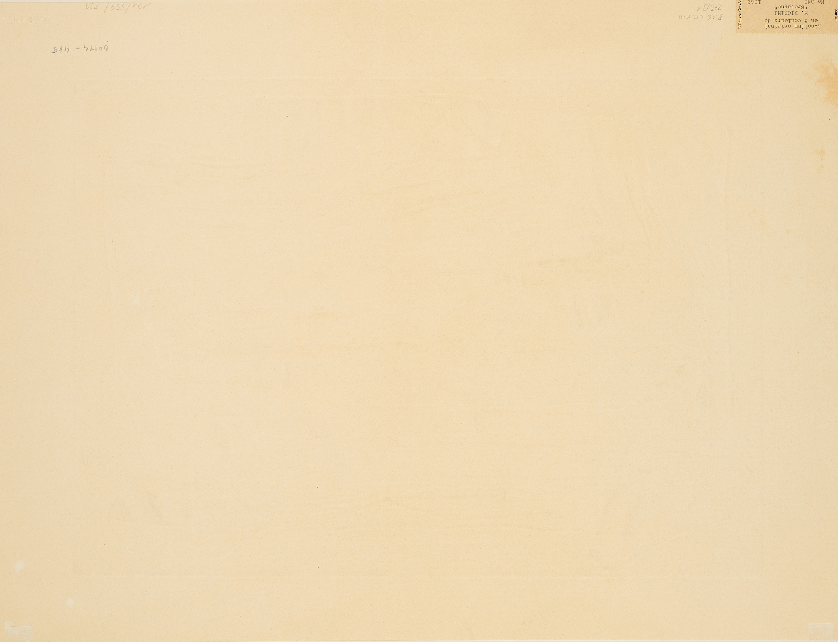 Beschnitten. Blatt schwach gebräunt. Oberflächliche Papierverletzung unten rechts. Verso Reste alter Montierung und bräunliche Verschmutzung unten links. Ansonsten guter Zustand.