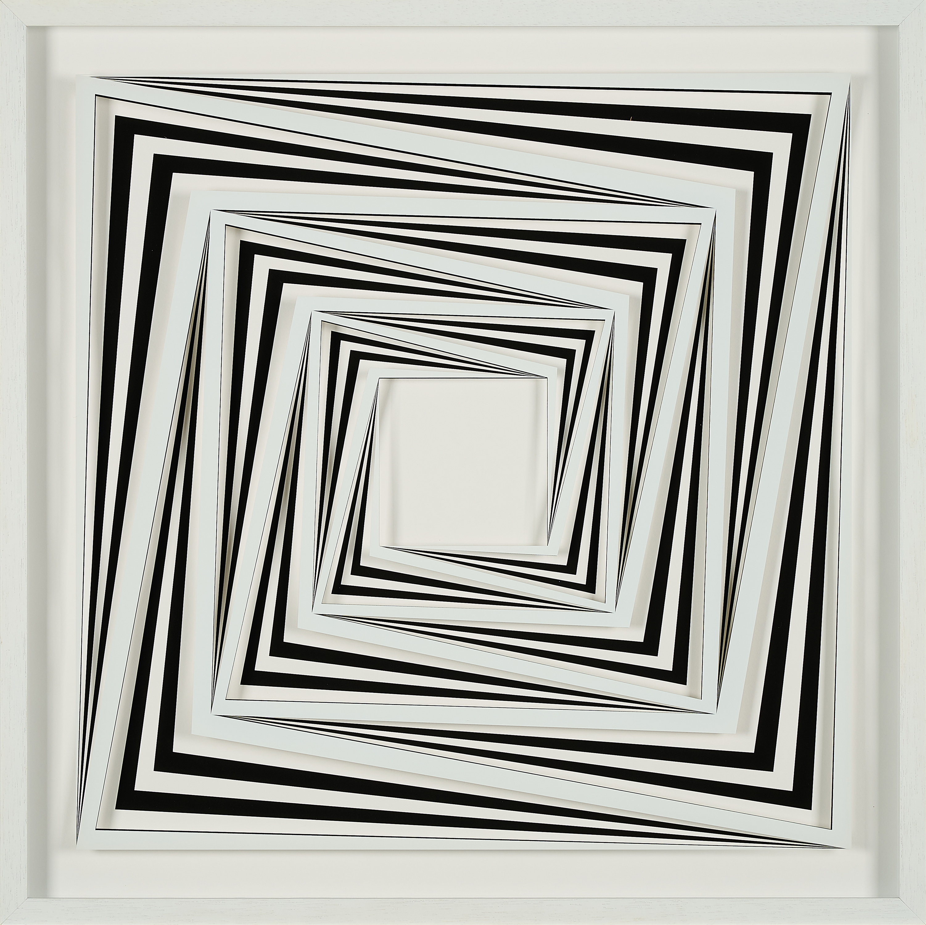 Technik: Farbserigrafie auf Acrylglas über Serigrafie auf Baumwollpapapier. In Holzrahmen.
