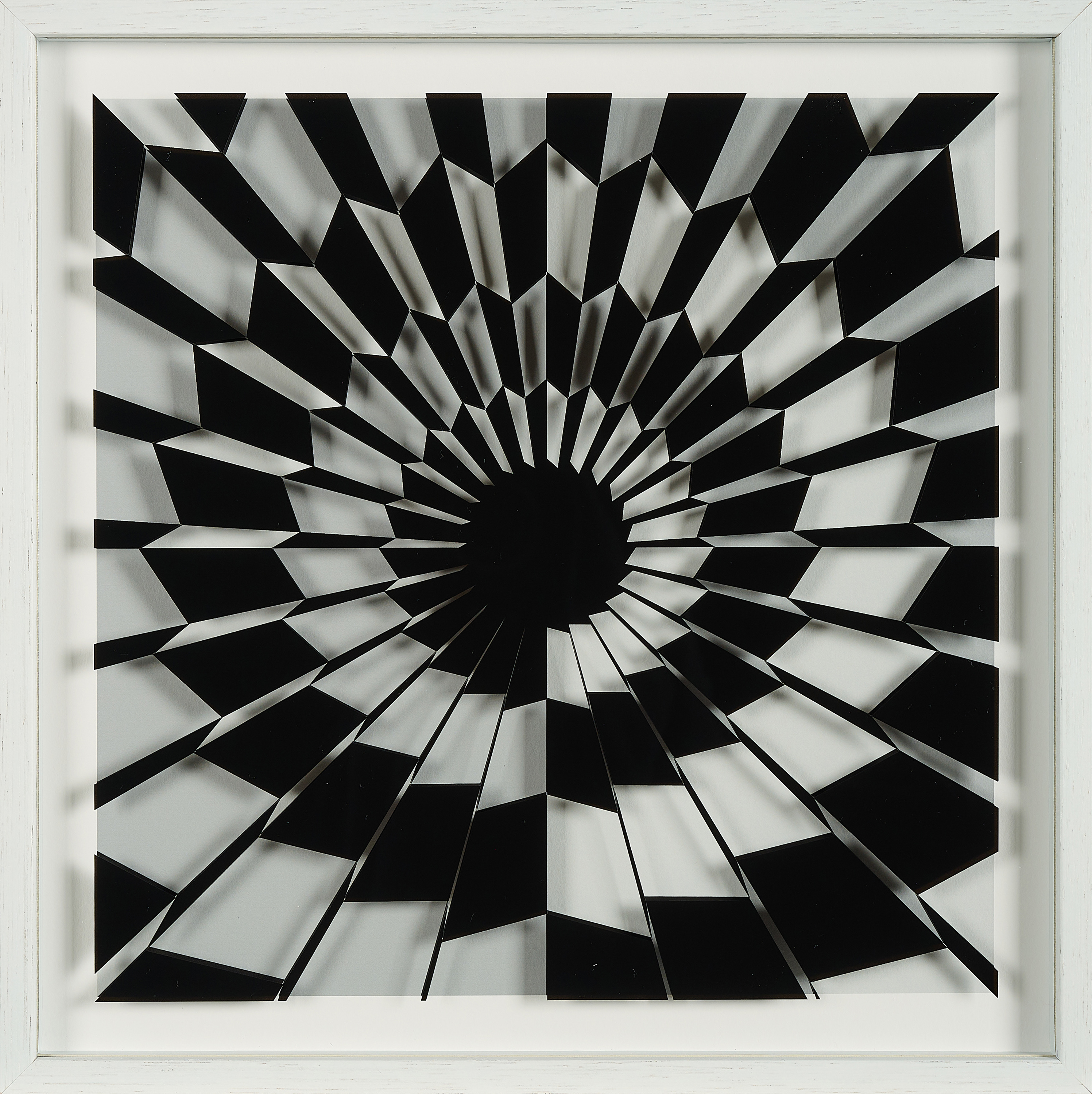 Technik: Serigrafie auf Acrylglas über Farbserigrafie auf Baumwollpapier. In Holzrahmen.