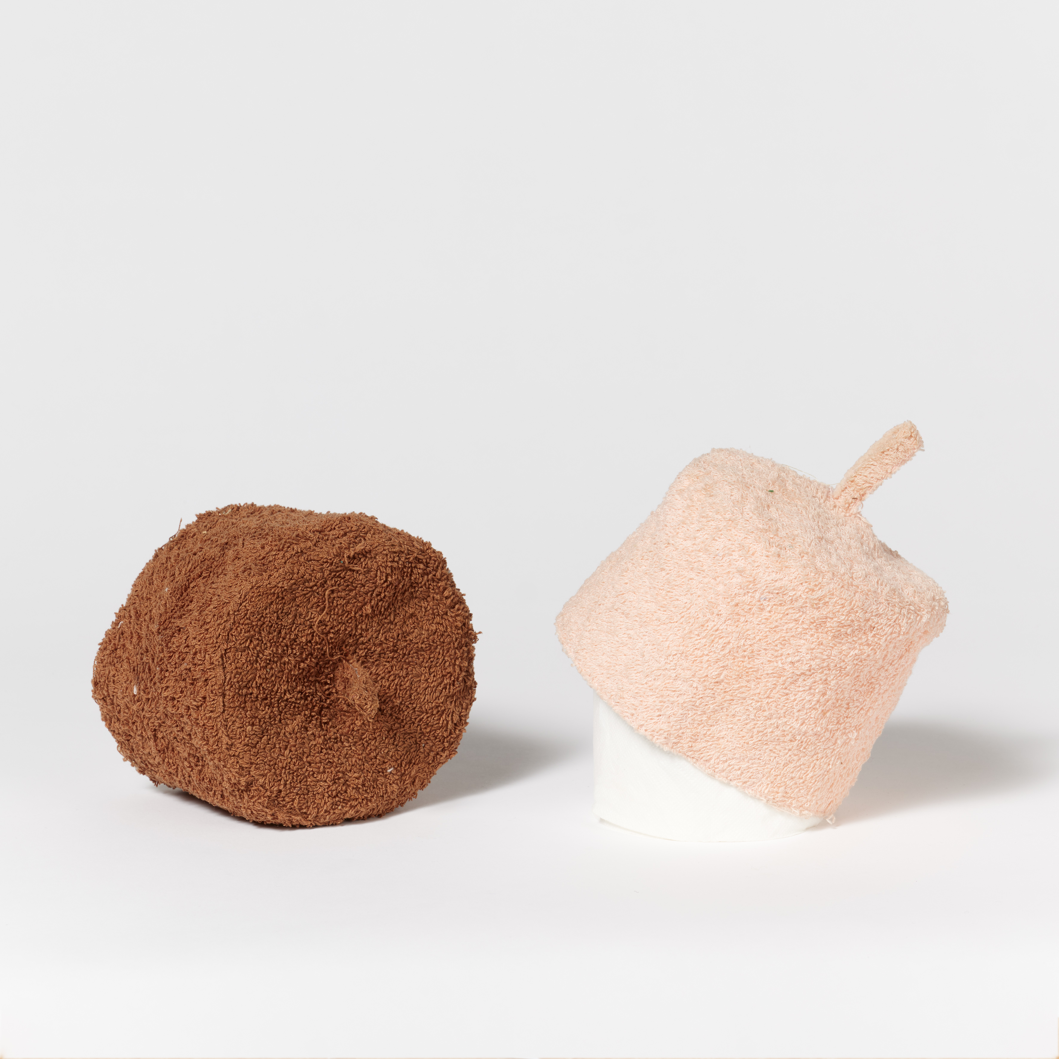 Technik: Jeweils: Toilettenpapierrolle und Frottee.