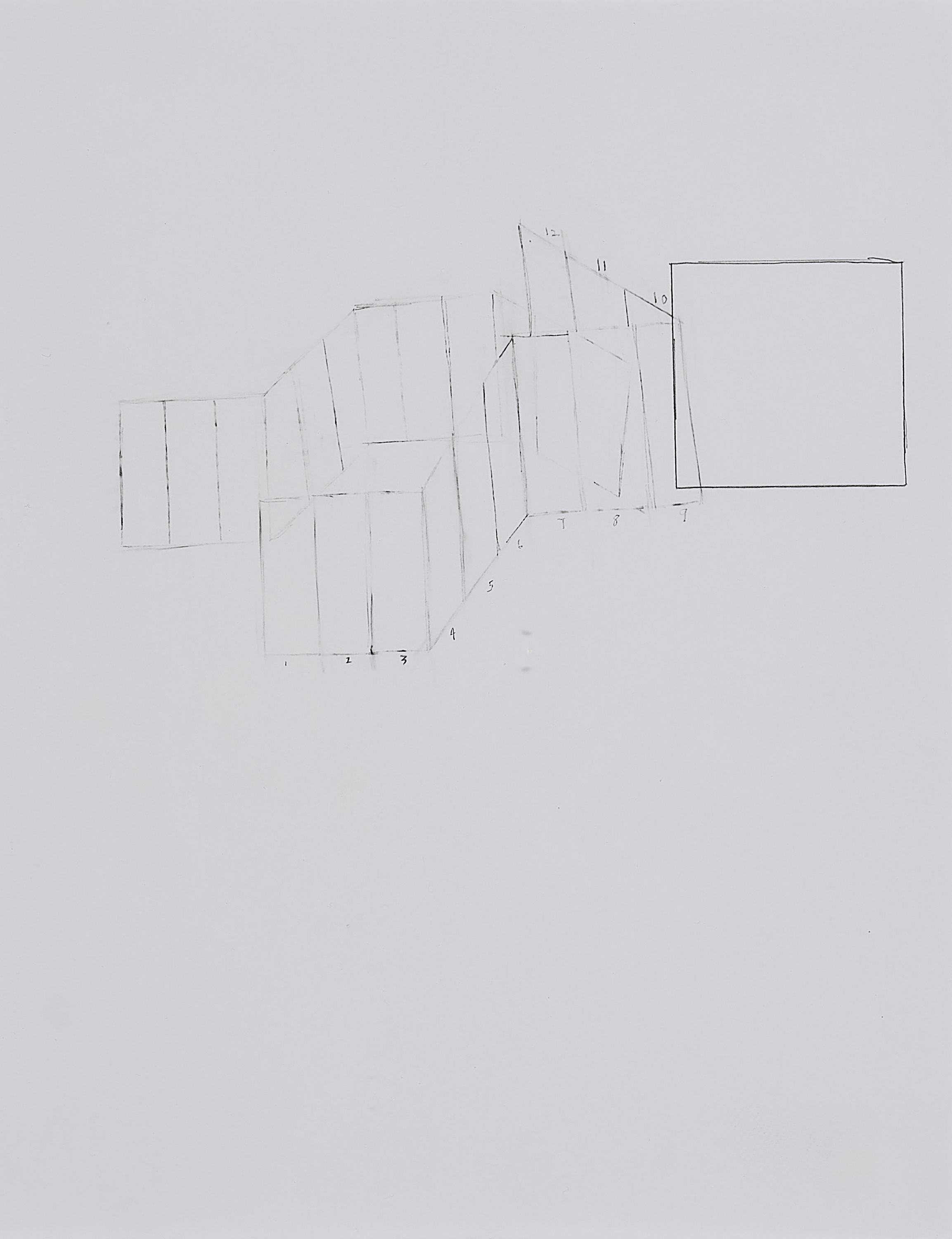 Die Blätter beziehen sich auf die Installation des "Raum im Raum", ein Würfel aus Sperrholzplatten aus dem Jahr 2002, der als leerer und verschließbarer Ort im Raum aufgestellt werden konnte.