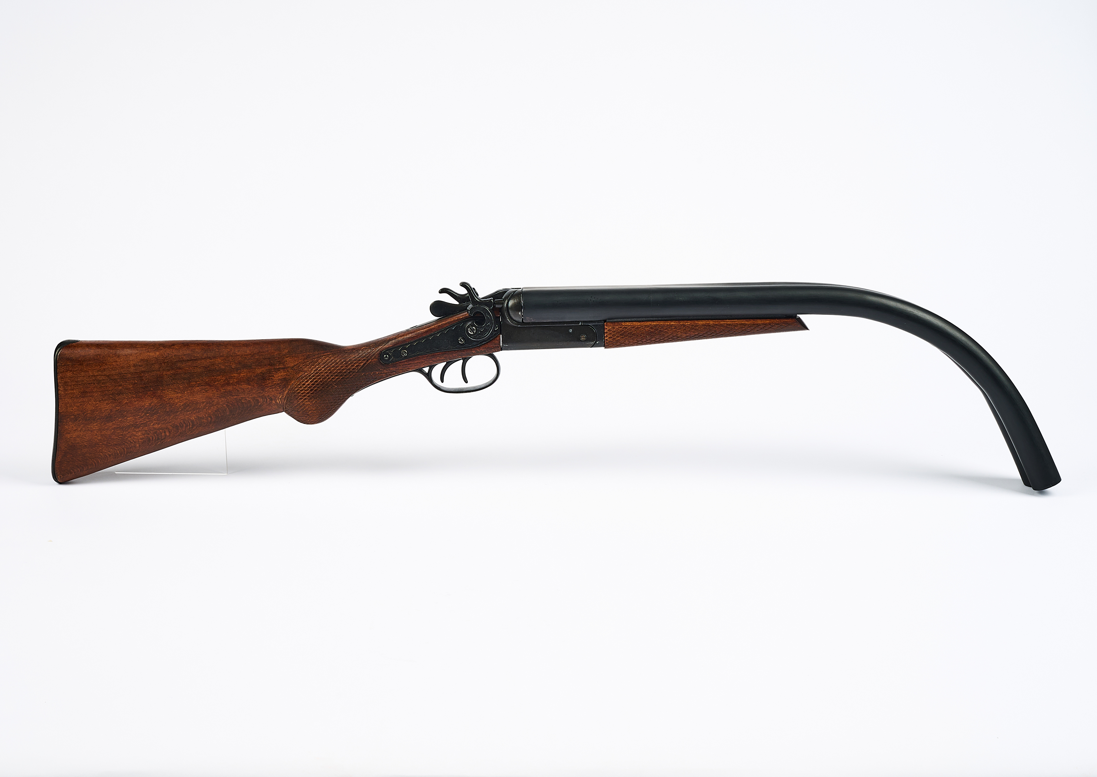 Technik: Doppelläufiges Gewehr, Holz, Metall, Rohr.