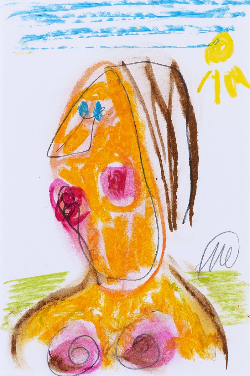 Ohne Titel. Wachskreiden auf Papier. 28 x 21cm. Künstlersignet rechts Mitte: ML. Rahmen.