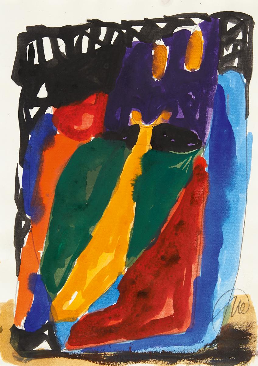 Ohne Titel. Gouache und Tusche auf Aquarellbütten. 30 x 21,5cm. Künstlersignet unten rechts: M.