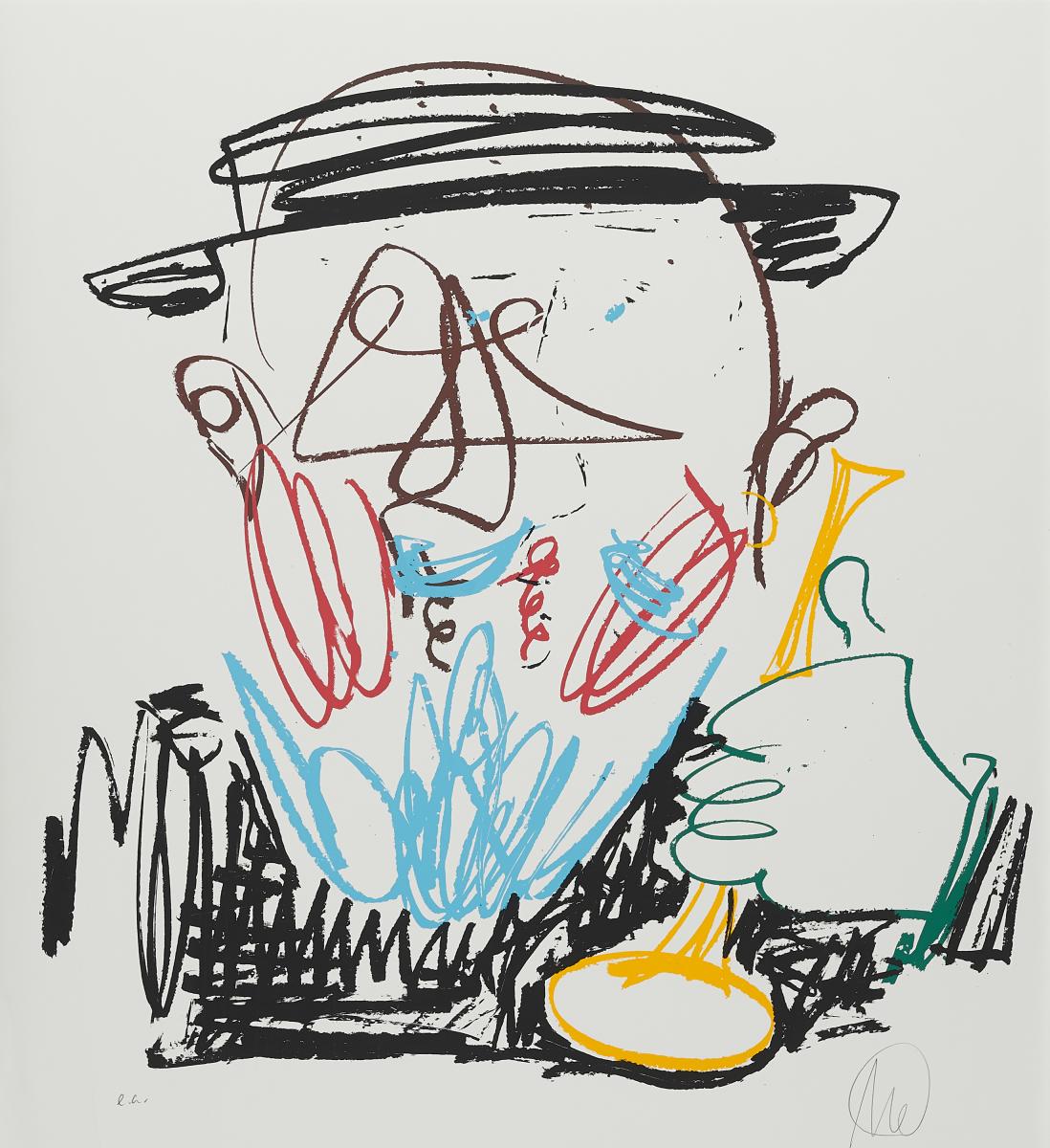 Ohne Titel (Trompeter). Farblithografie auf Velin. 72,5 x 70,5cm (88 x 76cm). Signiert und bezeichnet. Ex. E.A..