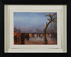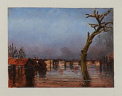 Bezeichnung: Signiert, datiert und betitelt verso (laut Dokumentation): Studie zu "Überschwemmtes Dorf" M M Krüger XI.