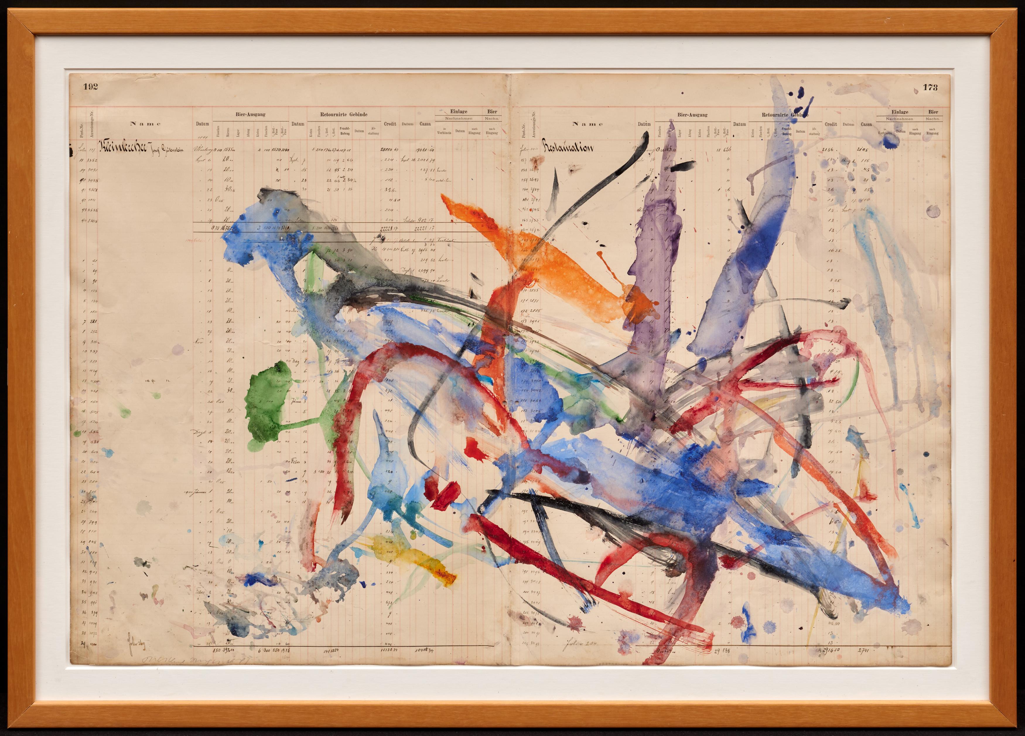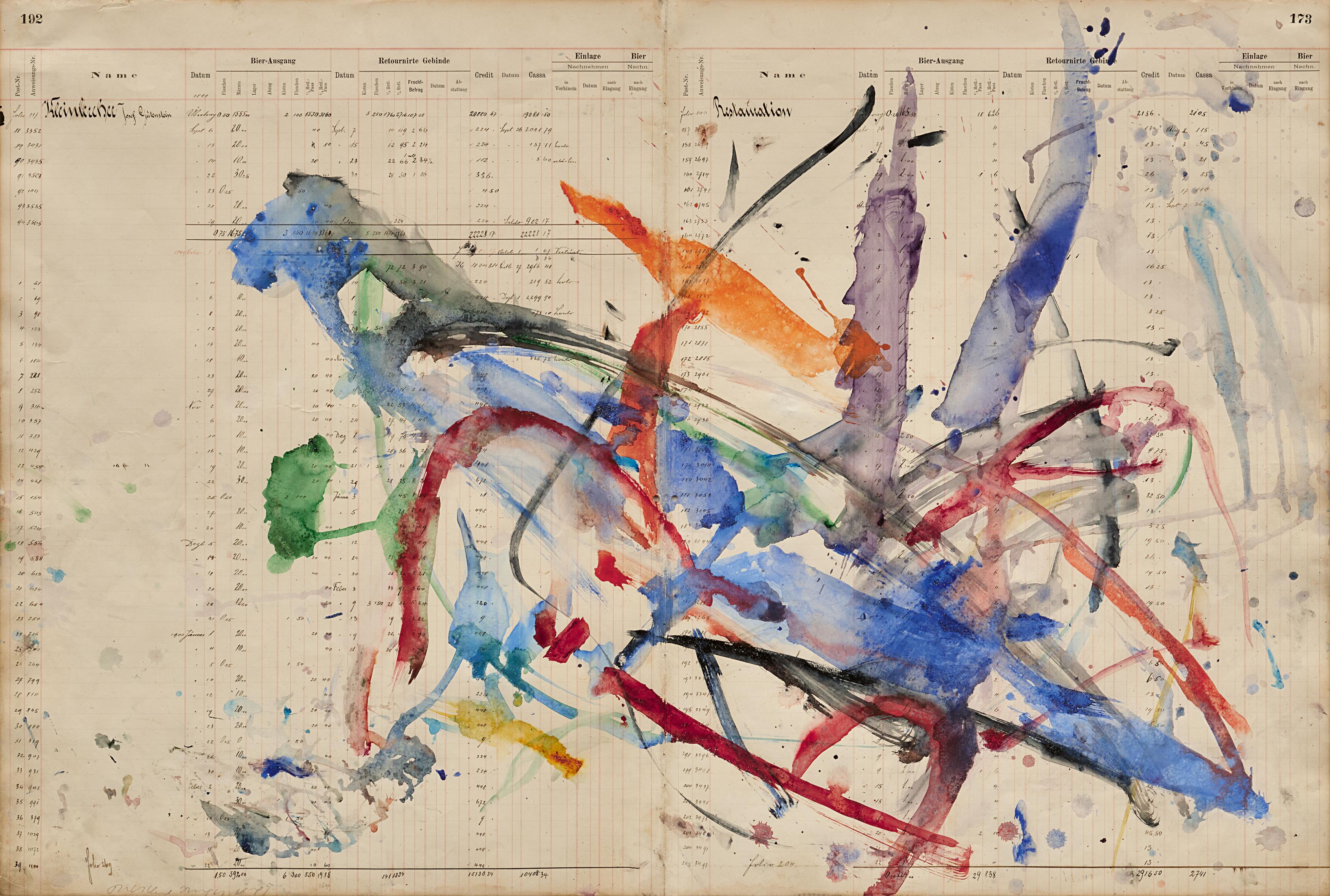 Technik: Aquarell auf der Doppelseite des Lieferbuches einer Brauerei.