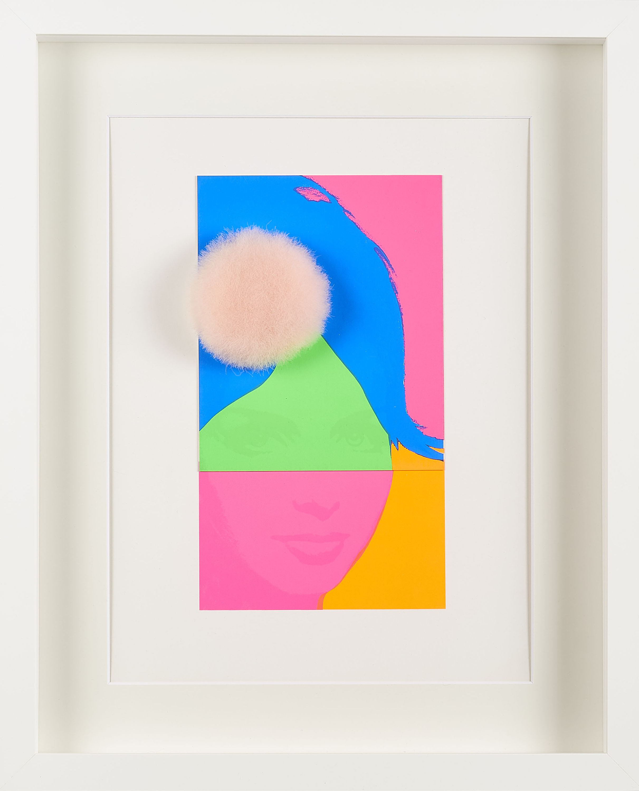 Technik: Farbserigrafie und Puderquaste aus Schwanendaunen auf leichtem Karton. In Passepartout montiert.