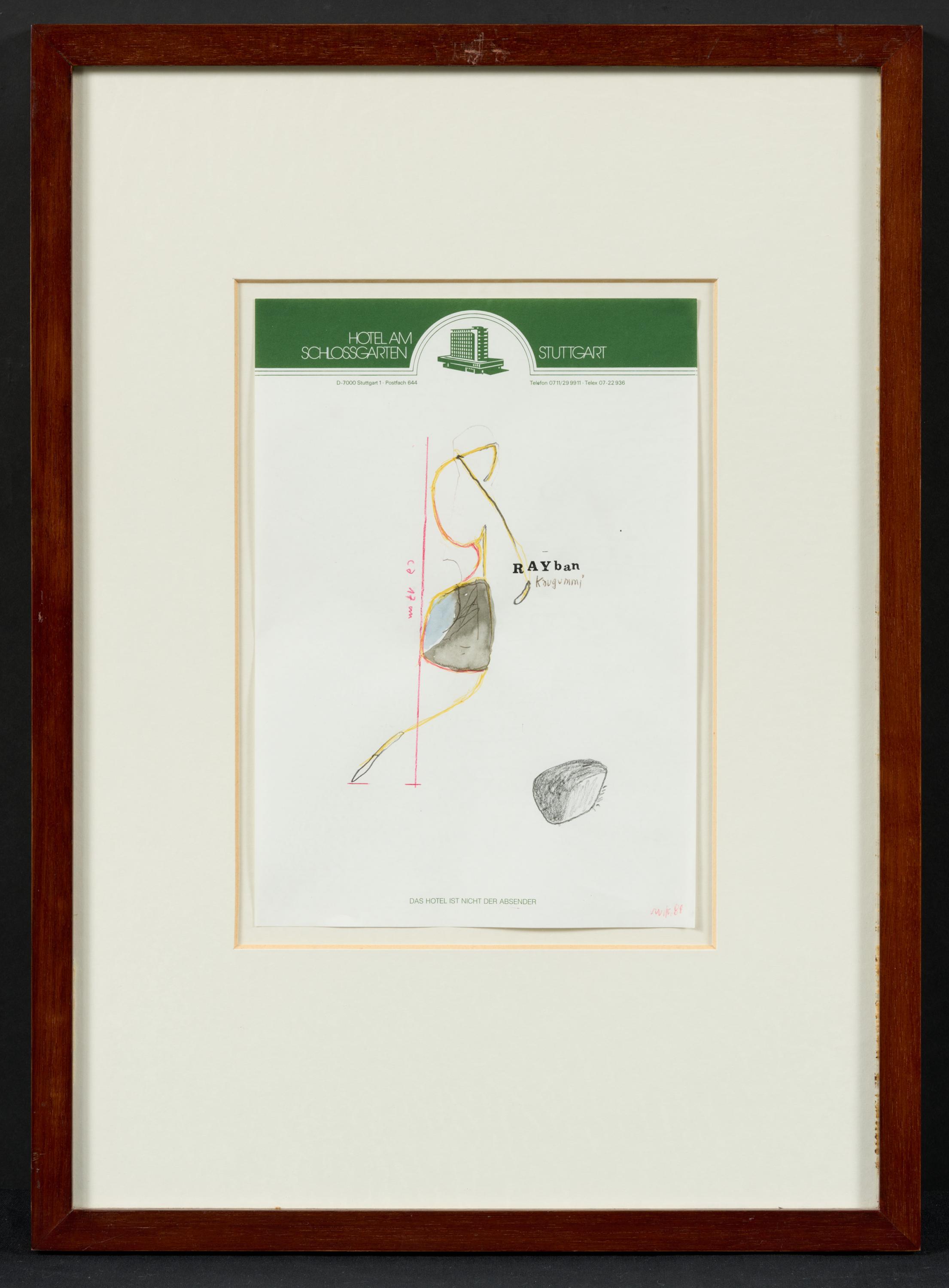 Technik: Mischtechnik auf Hotelbriefpapier.