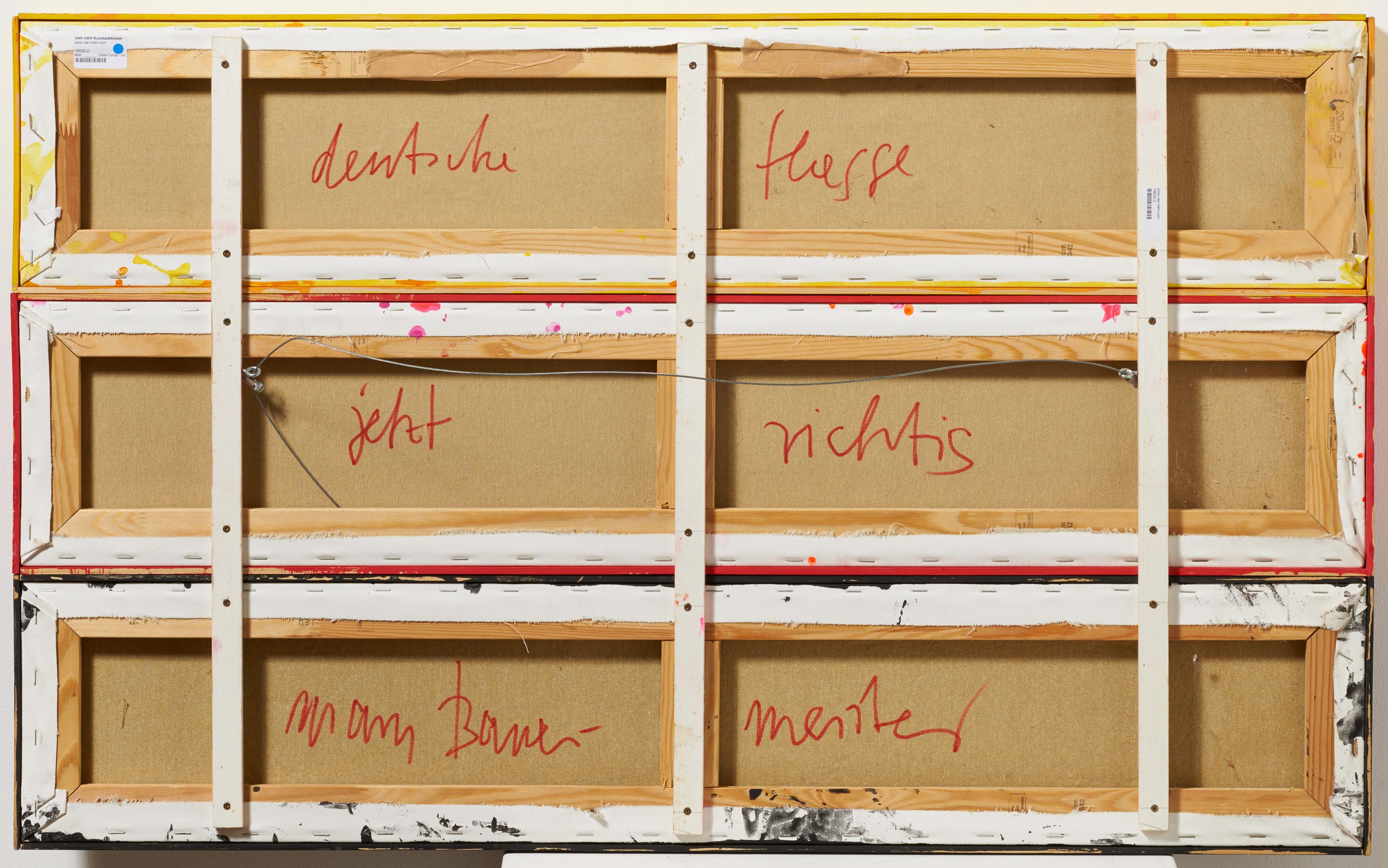 Das Gemälde entstand anlässlich der seit 2011 von Mary Bauermeister verfolgten Kunstaktion "Umkehrung der deutschen Flagge". Wir danken Herrn Simon Stockhausen für die freundliche, wissenschaftliche Unterstützung.