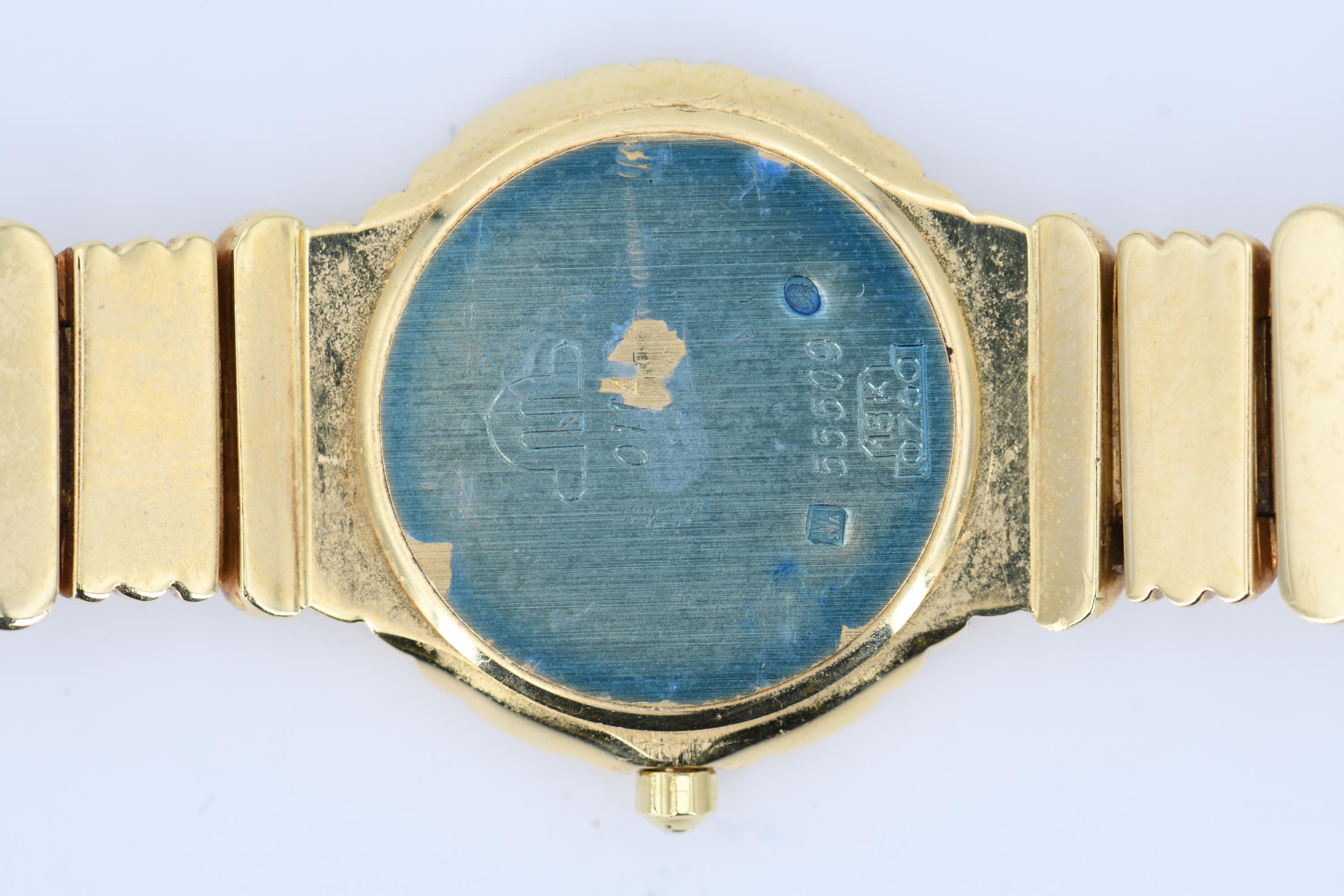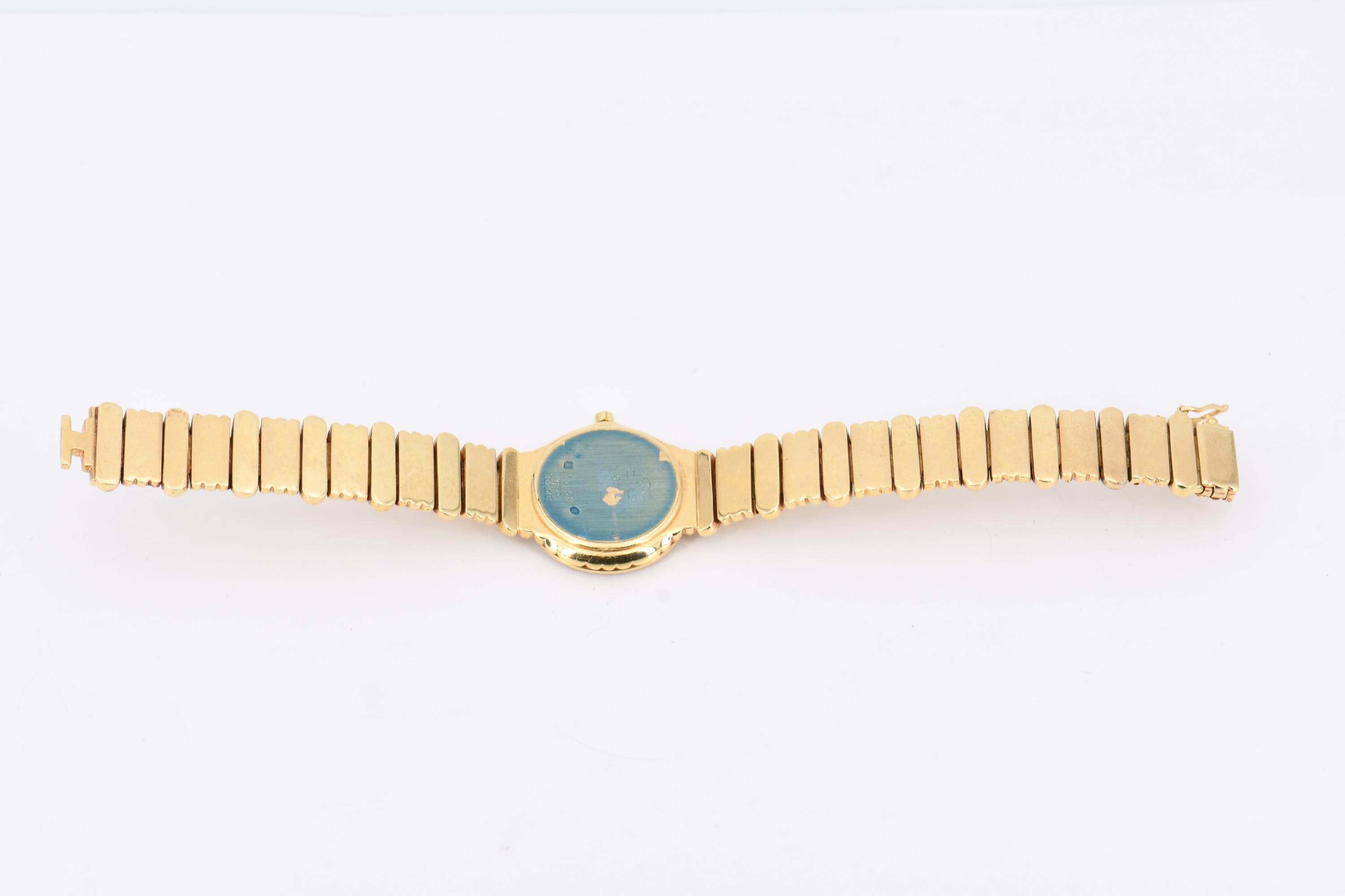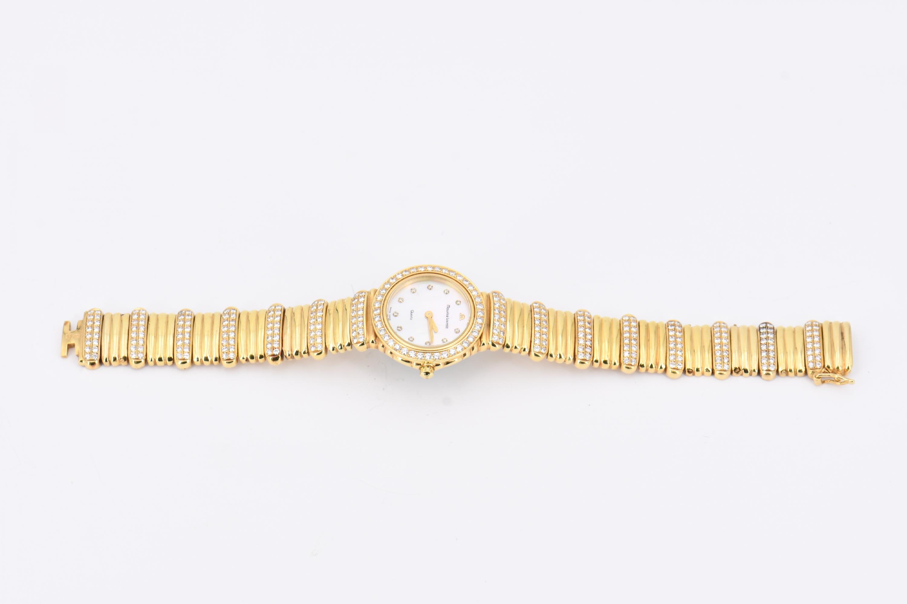 Gehäuse/Armband: 750/- Gelbgold, Gliederarmband und Lünette mit Diamantbesatz, Zffbl. Perlmutt, Zeiger gelb, Index Brillantbesatz.