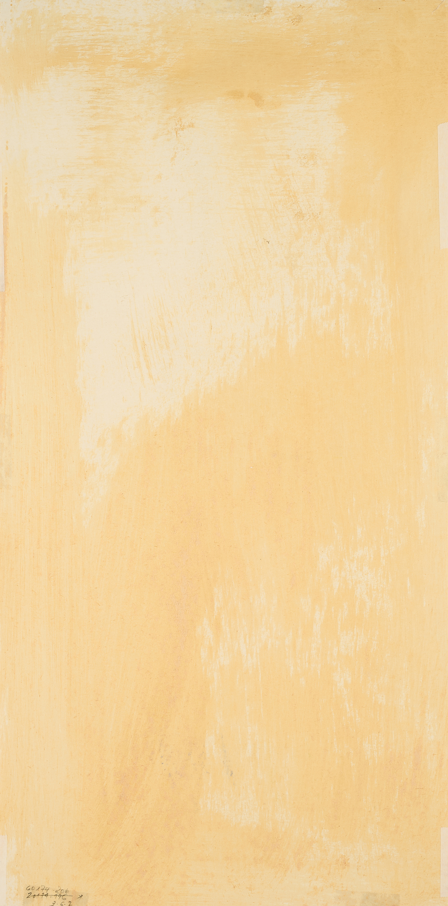 Bezeichnung: Signiert und datiert in der Darstellung unten rechts: Ackermann 1960. Auf der ehemaligen Rahmenrückwand nochmals signiert sowie betitelt und datiert: Max Ackermann, An die Freude 1960.