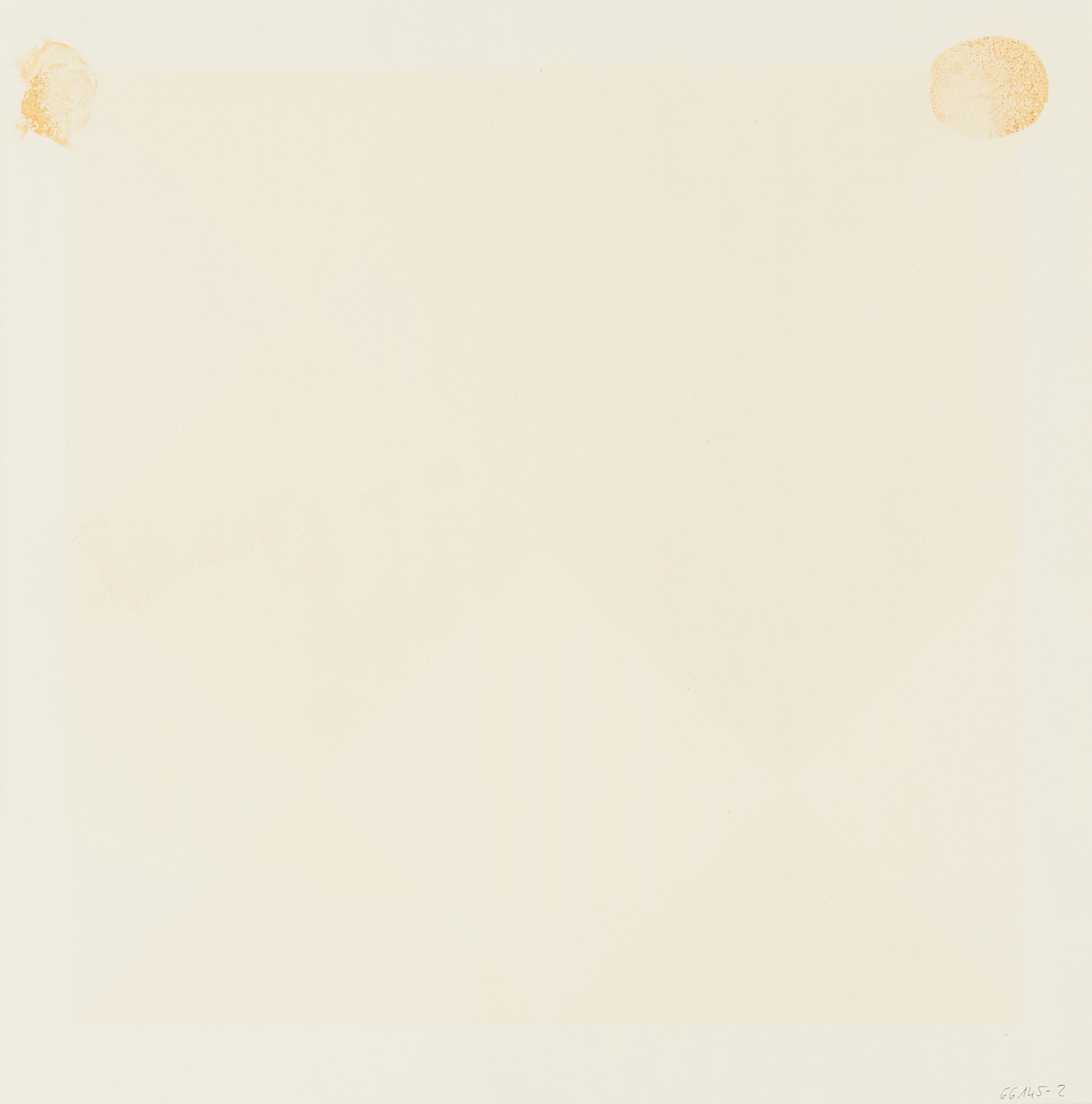 vier sich durchdringende farben. 1968. Farbserigrafie auf Velin. 26 x 26cm (30,5 x 30cm). Signiert, datiert und nummeriert. Edition Domberger, Filderstadt (Hrsg.). Ex. 10/22.