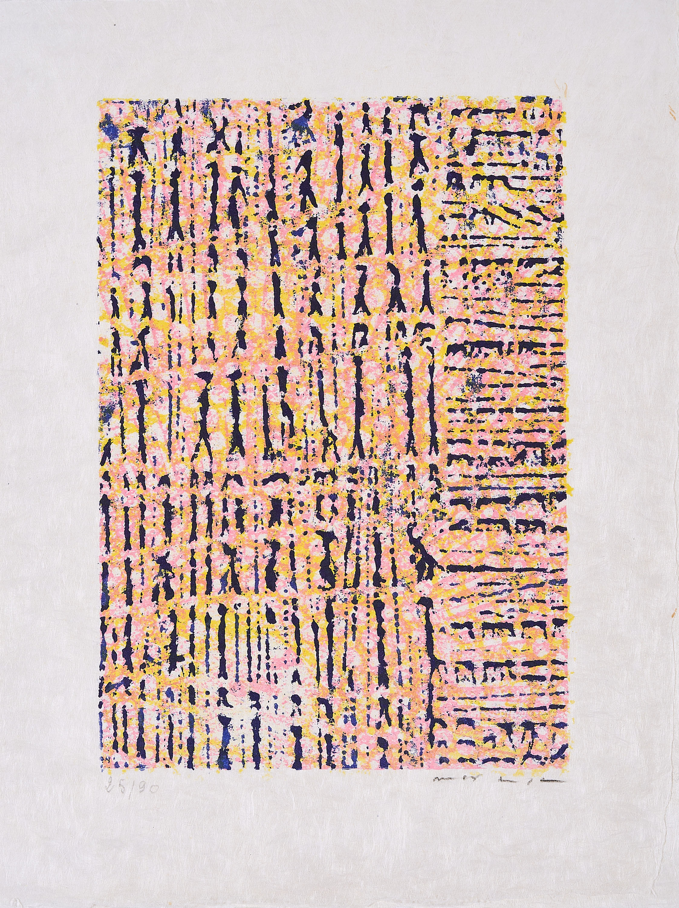 Technik: Farblithografie auf Japan (auf die Hälfte gefaltet).