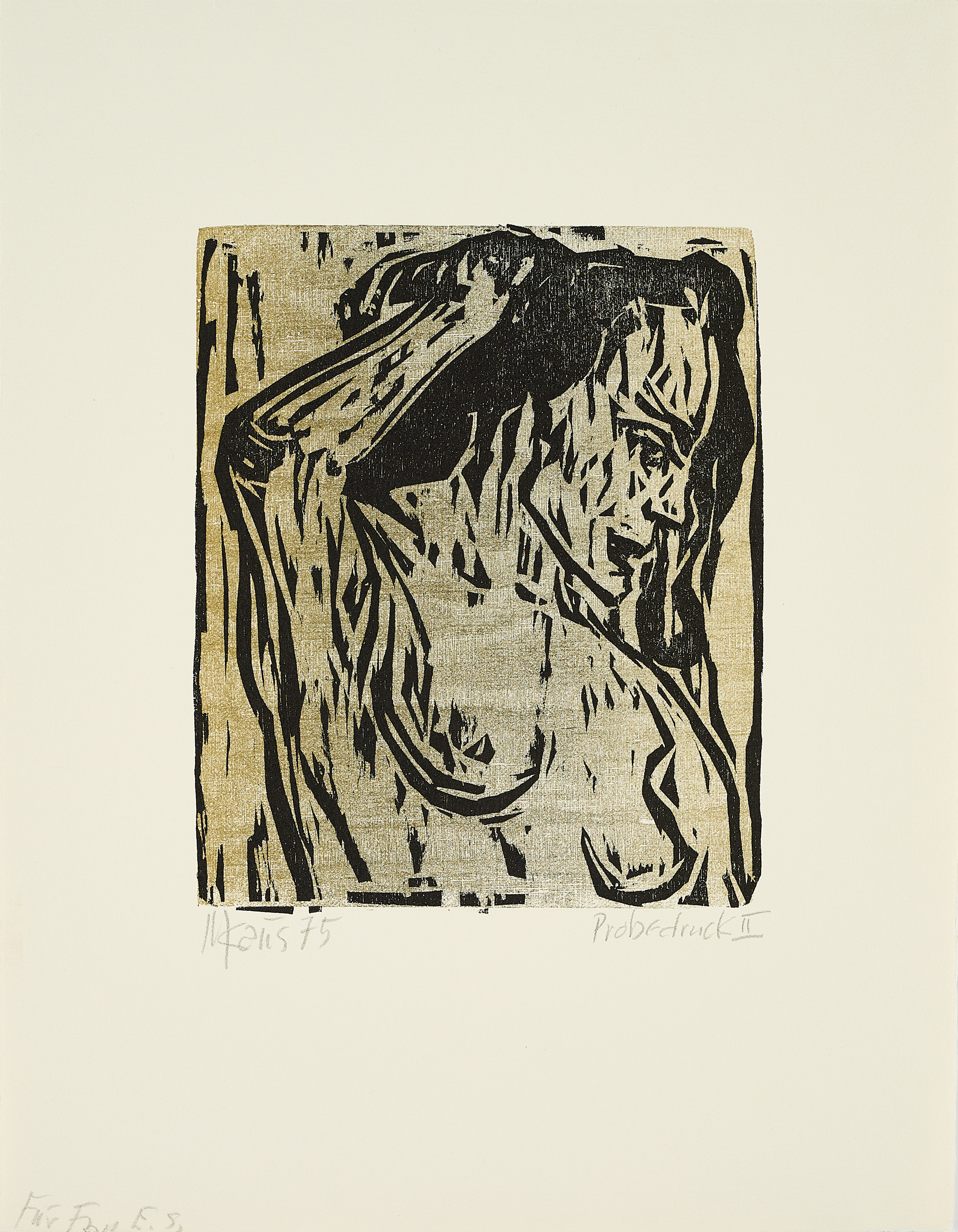 a) Halbakt. 1975. Farbholzschnitt auf Bütten. 19,5 x 16cm (34,5 x 26,5cm). Signiert,