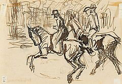 Der Ausritt. Um 1910. Tuschzeichnung auf Velin. 10 x 14,5cm. Signiert unten rechts: MLiebermann. Modellrahmen.