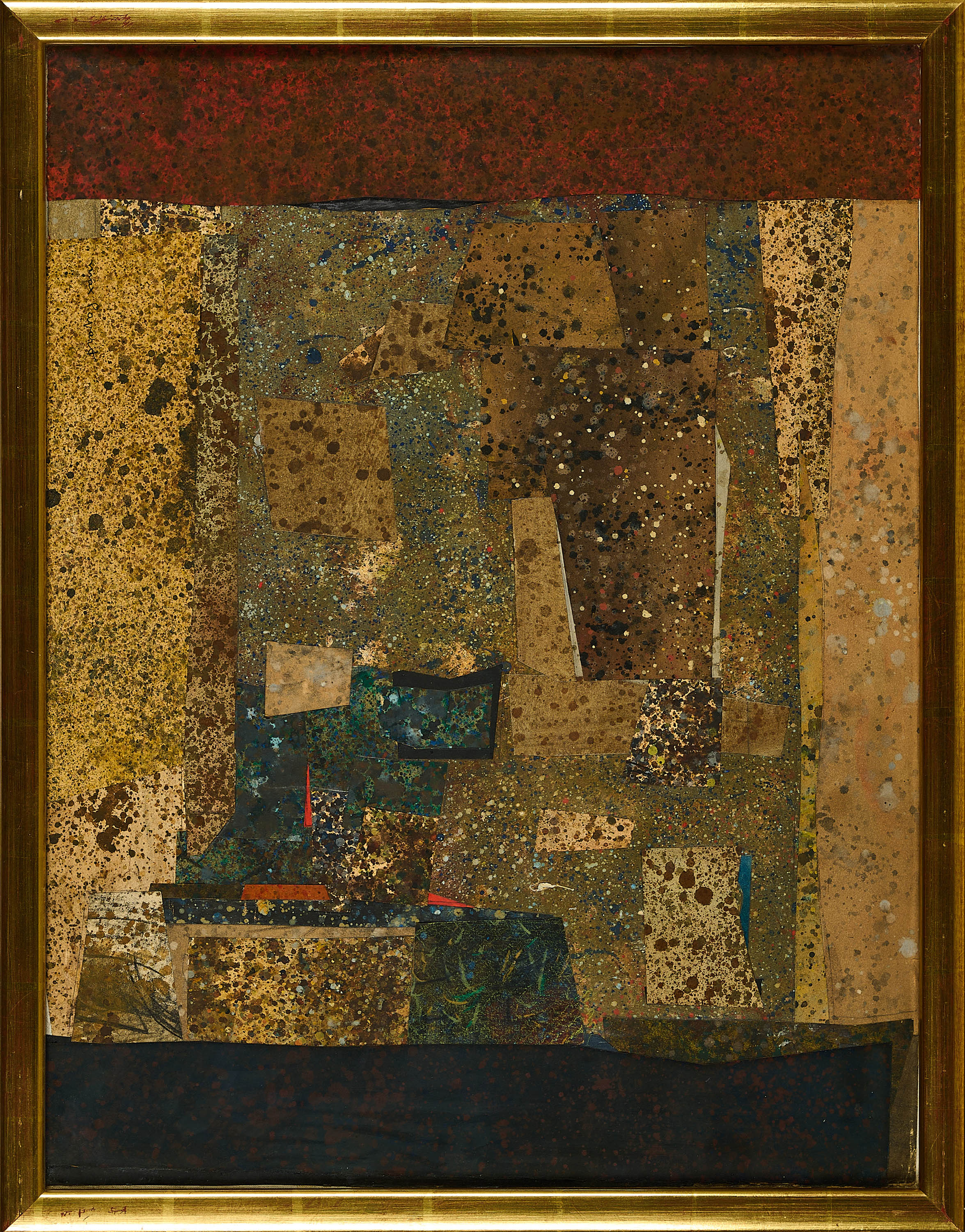 Technik: Mischtechnik, collagiert auf Leinwand.