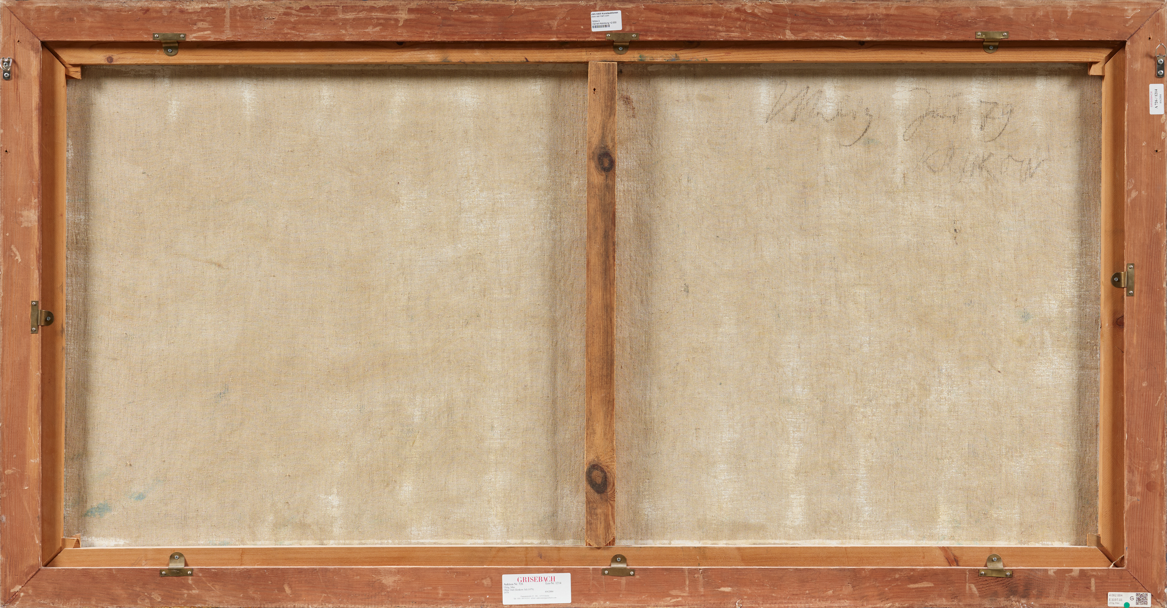 Minimale Staubablagerungen. Minimales Krakelee. Vereinzelt minimal wellige Leinwand. Ansonsten guter Zustand. Im Rahmen beschrieben.