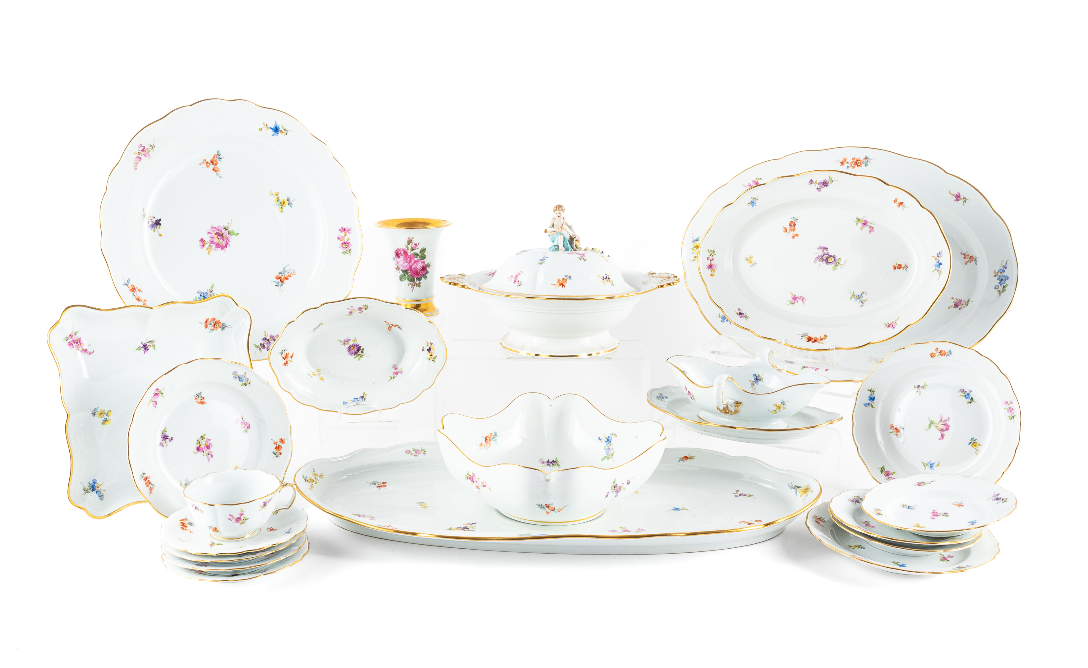 83 TEILE AUS EINEM SERVICE MIT STREUBLÜMCHENDEKOR.