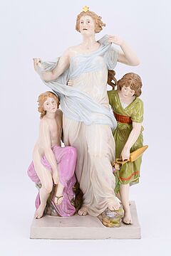 Beschreibung: Auf quadratischem Sockel die weibliche Allegorie bekrönt vom Morgenstern und begleitet von