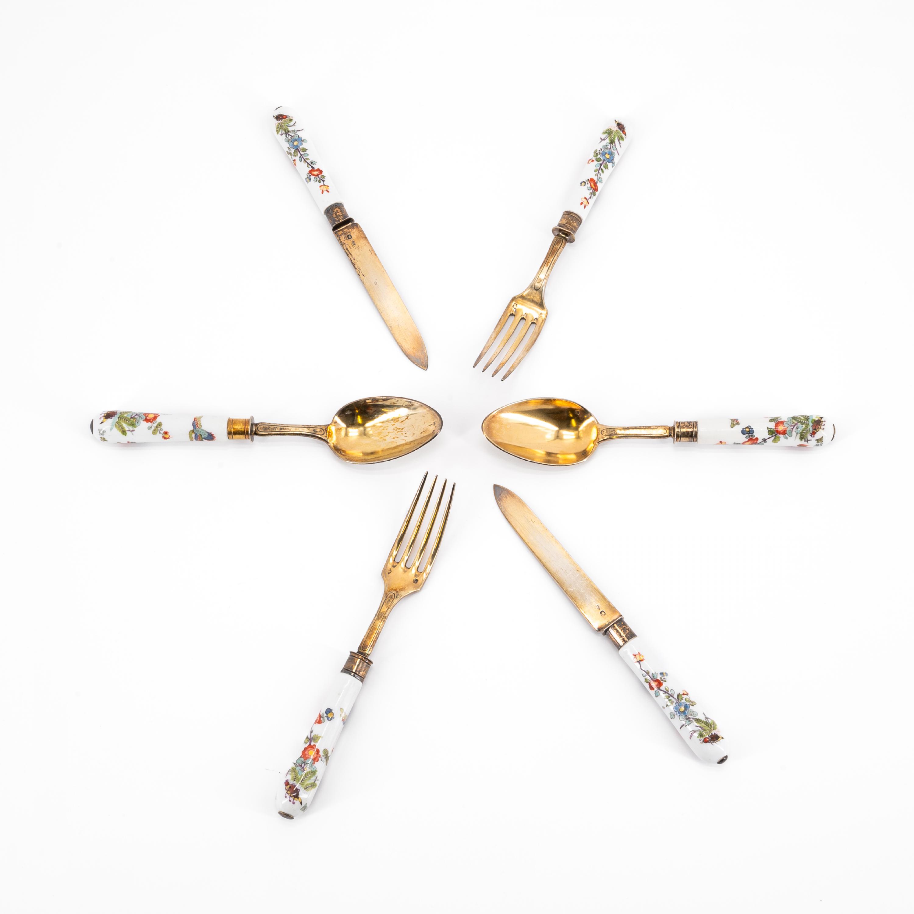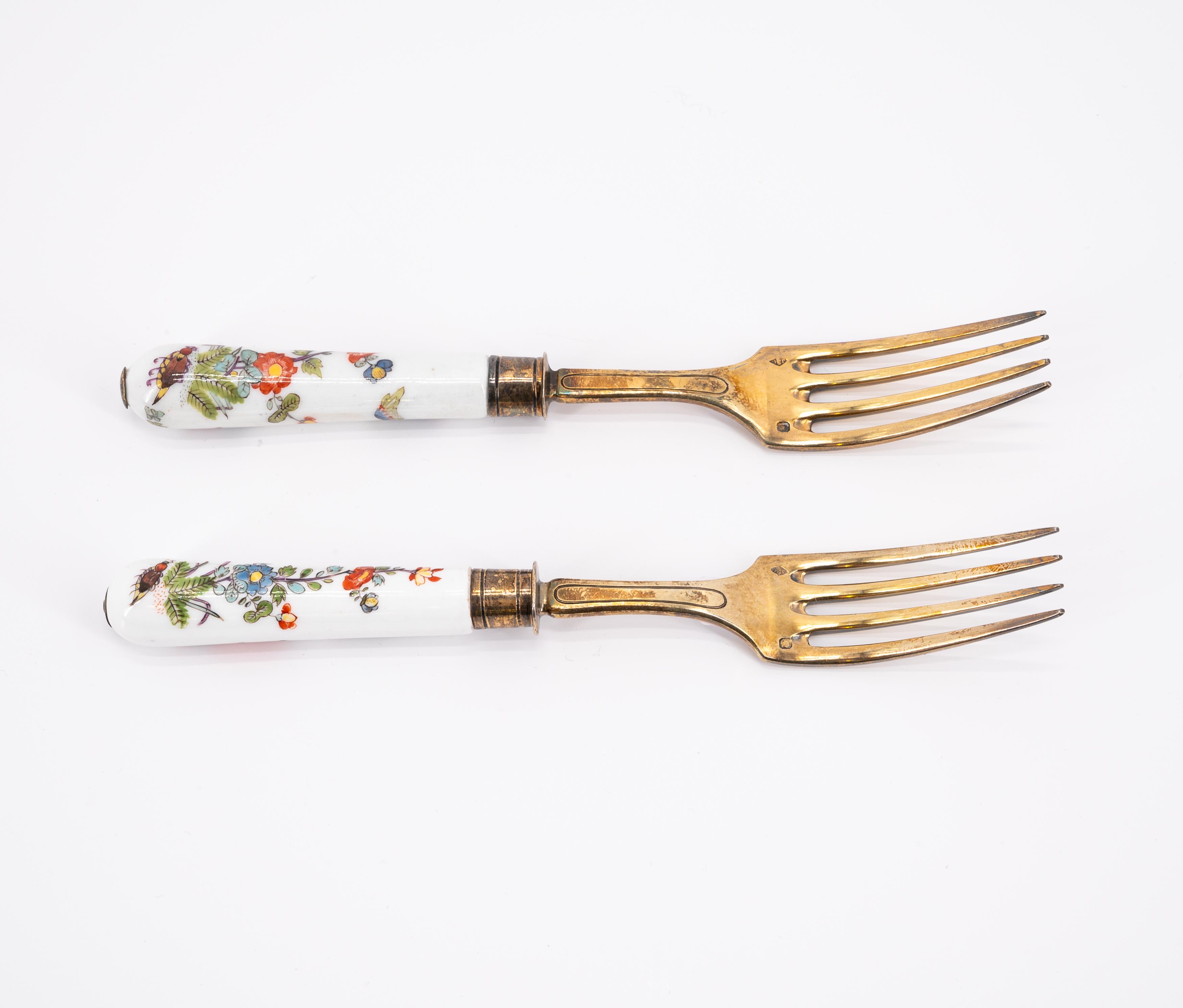 Technik: Porzellan, farbig dekoriert. Silber, vergoldet.